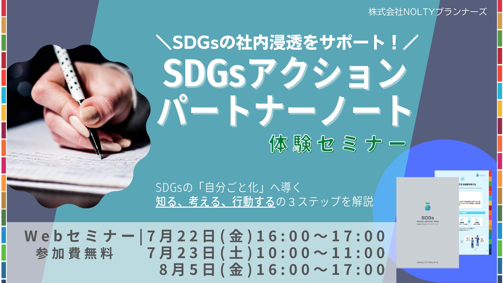 ★★ご好評につき追加開催★★ 法人向け手帳のNOLTYプランナーズが企業のSDGs施策をサポートするプログラムを開発いたしました。その一部を体験いただけるセミナーをオンラインにて開催いたします。