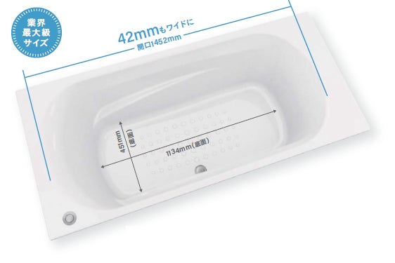 「キープクリーン浴槽」は、約9mm厚のアクリル人造大理石一層構造で、肌に触れた瞬間に違いがわかる滑らかな表面が特長です。また、人間工学に基づき、背もたれ角度を最適化した「ラウンド浴槽」は業界最大級のサイズとなっており、ゆったりとした入り心地を実感していただけます。ベーシックな「FRP浴槽」は、発色の良さが特長。カラフルなバスルームをお求めやすい価格でご提供します。