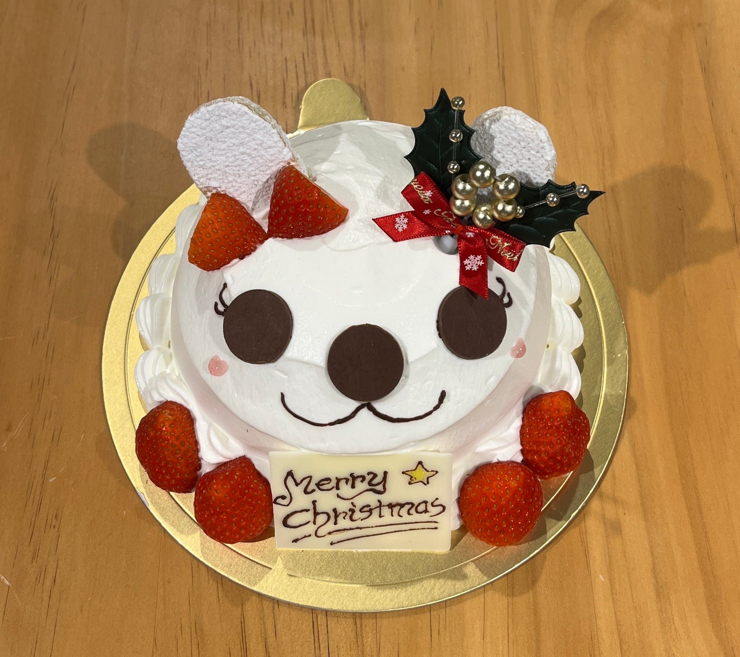 可愛らしいうさぎさんのショートケーキをクリスマス限定仕立てに。国産小麦で焼き上げたふんわりスポンジに、苺と甘さ控えめの生クリームをサンド。