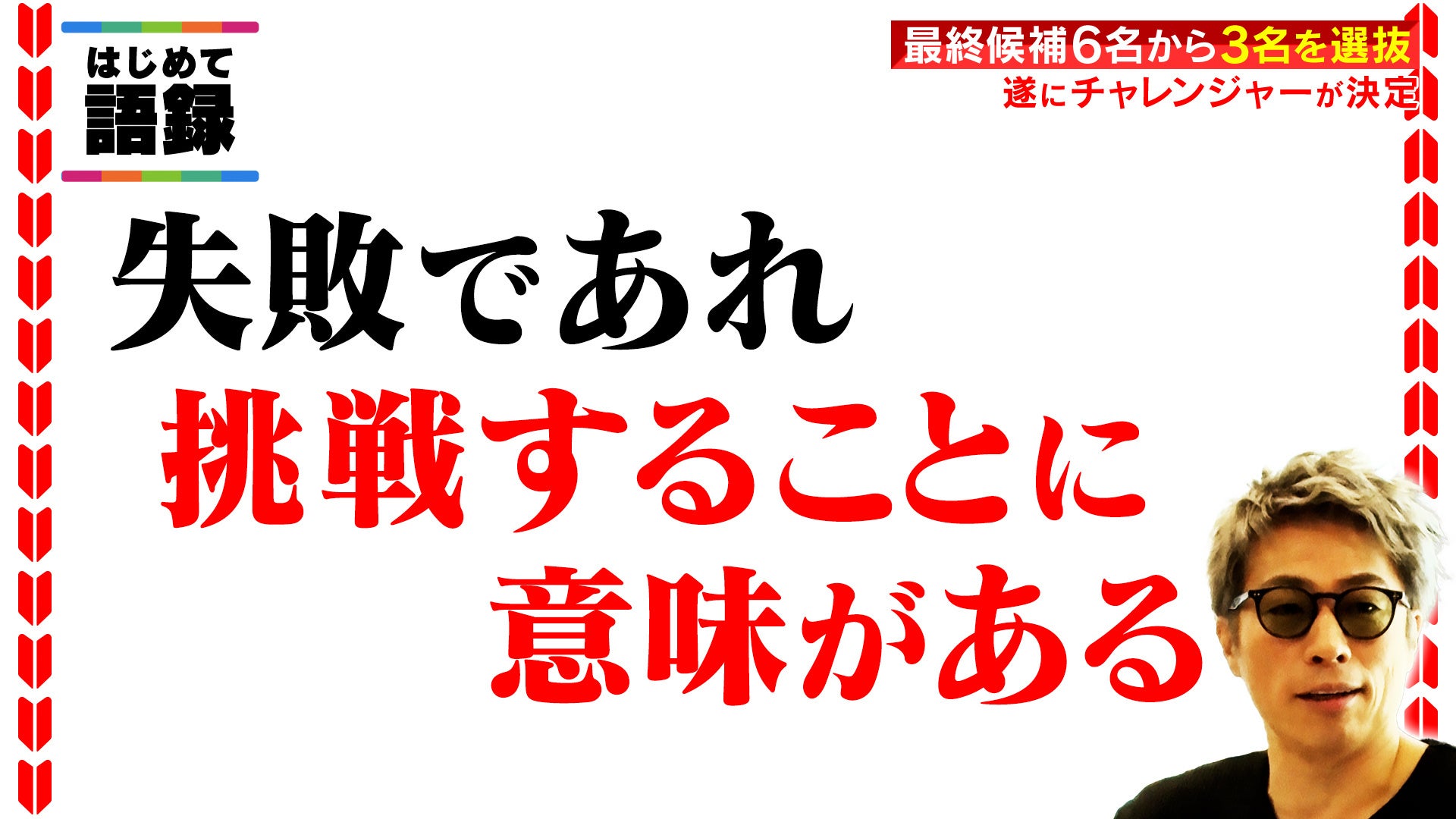 日本全国、総勢1,142名の応募の中から、アツい想いを持った“はじめたいこと”に挑戦する3名が決定。3名のチャレンジャーは、番組MC兼 挑戦者の想いに寄り添う「はじめてサポーター」に就任した田村淳さんと、技術を教える「はじめてコーチ」とともに “はじめたいこと”を実現するため100日間の挑戦に取り組みました。