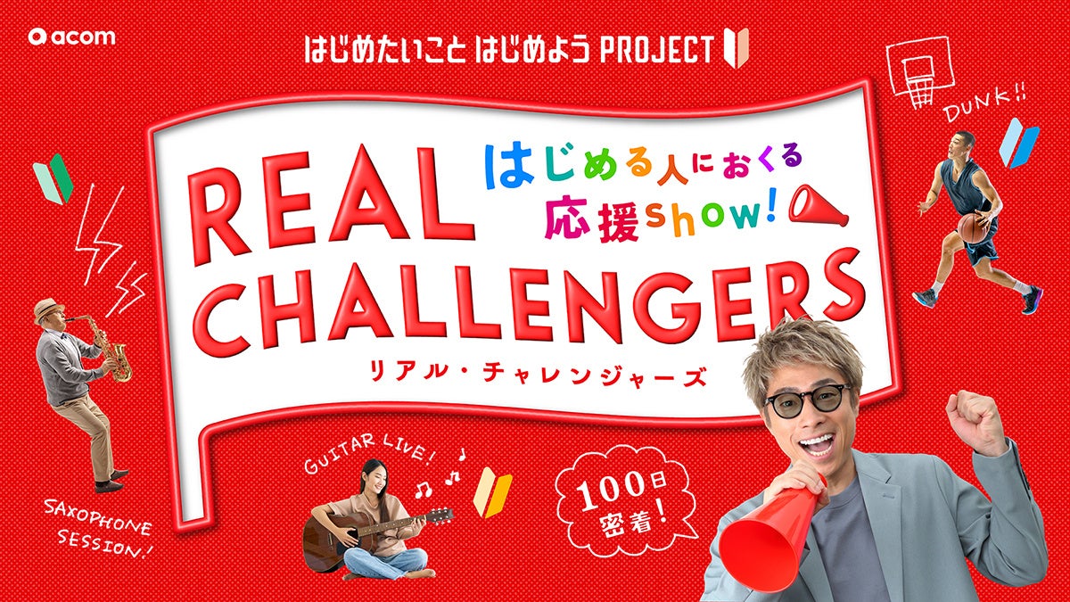 プロジェクト2年目である今年は1,142件の応募の中から3名のチャレンジャーを選出。また、田村淳さんを番組MCに迎え、3名の挑戦に密着した番組『はじめる人におくる応援show!リアル・チャレンジャーズ』を全7回に渡り配信いたします。