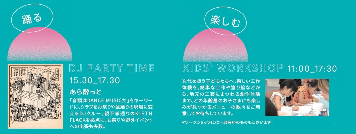 次代を担う子供たちへ、楽しい工作体験を。簡単な工作や塗り絵などから、地元の工芸にまつわる創作体験まで、どの年齢層のお子さまにも楽しんでもらえるメニューの数々をご用意してお待ちしております。 *ワークショップには一部有料のものもございます。
