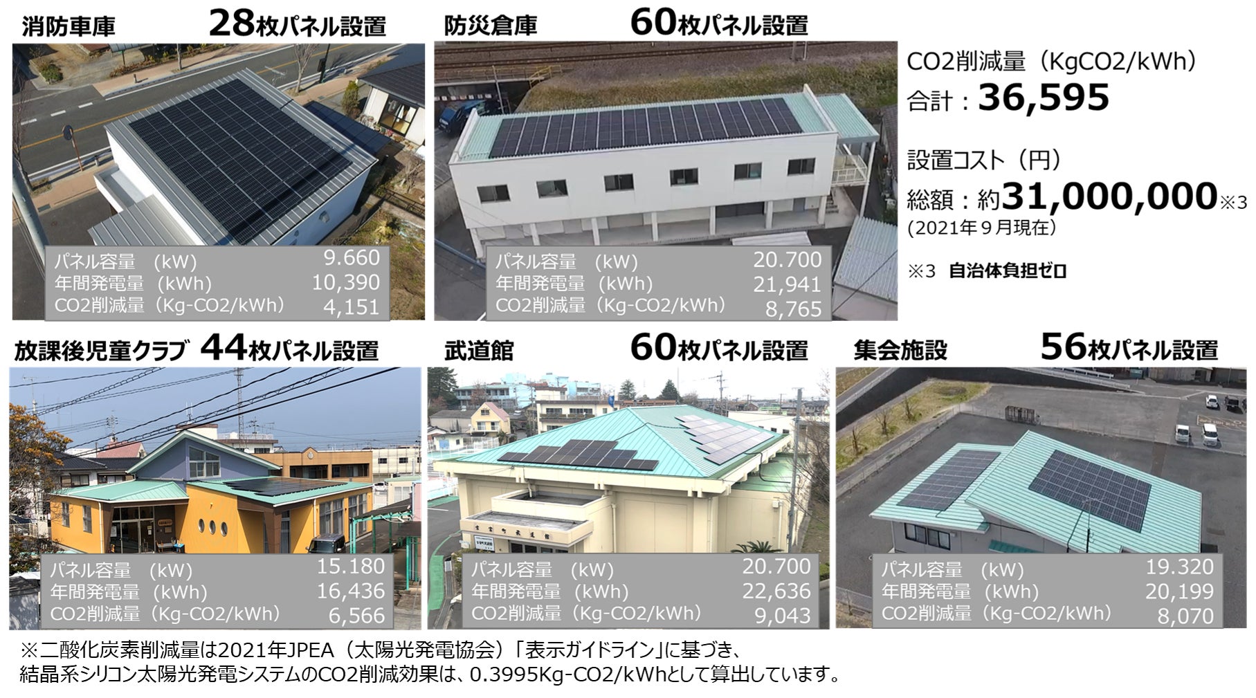 - 参考実績 「地域脱炭素プロジェクト」吉富モデル (公共施設47ヵ所のうち5カ所に設置)