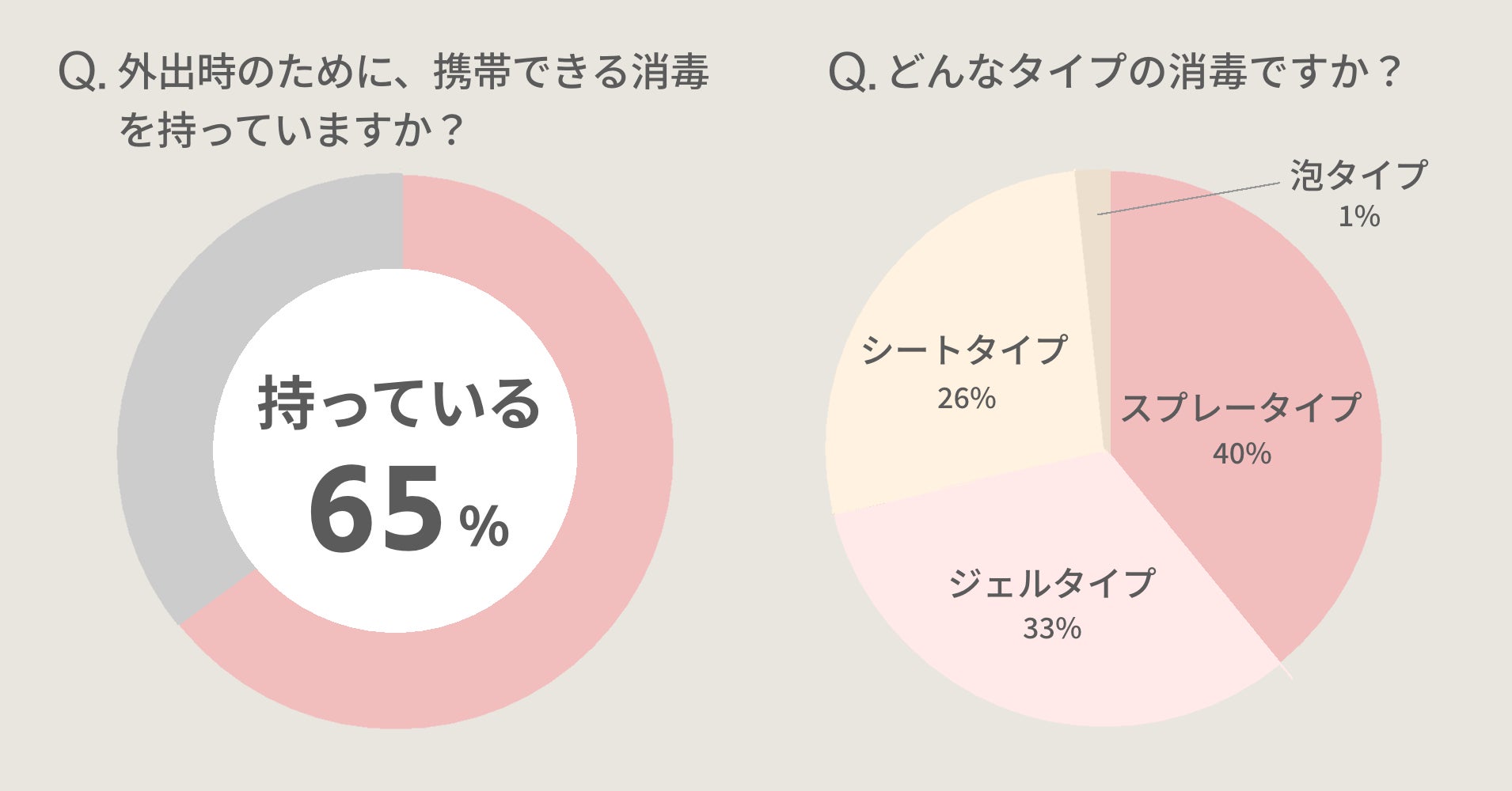 - 消毒用アルコールを携帯している女性は65%。スプレー、ジェル、シート、何タイプが人気?