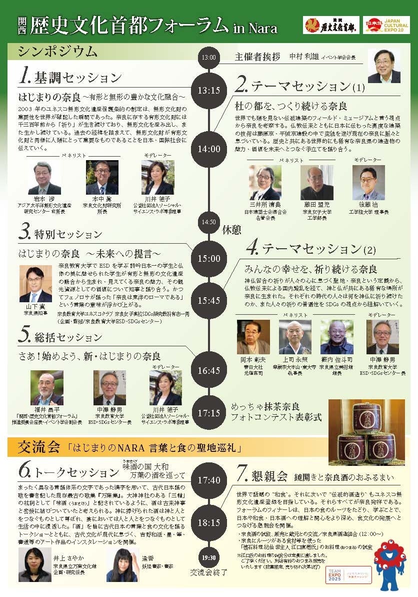大阪・関西万博カウントダウン!奈良の有形と無形の文化遺産の魅力を発信!「TEAM EXPO 2025」プログラム/共創チャレンジ「関西・歴史文化首都フォーラム」in NARAのプログラム決定!