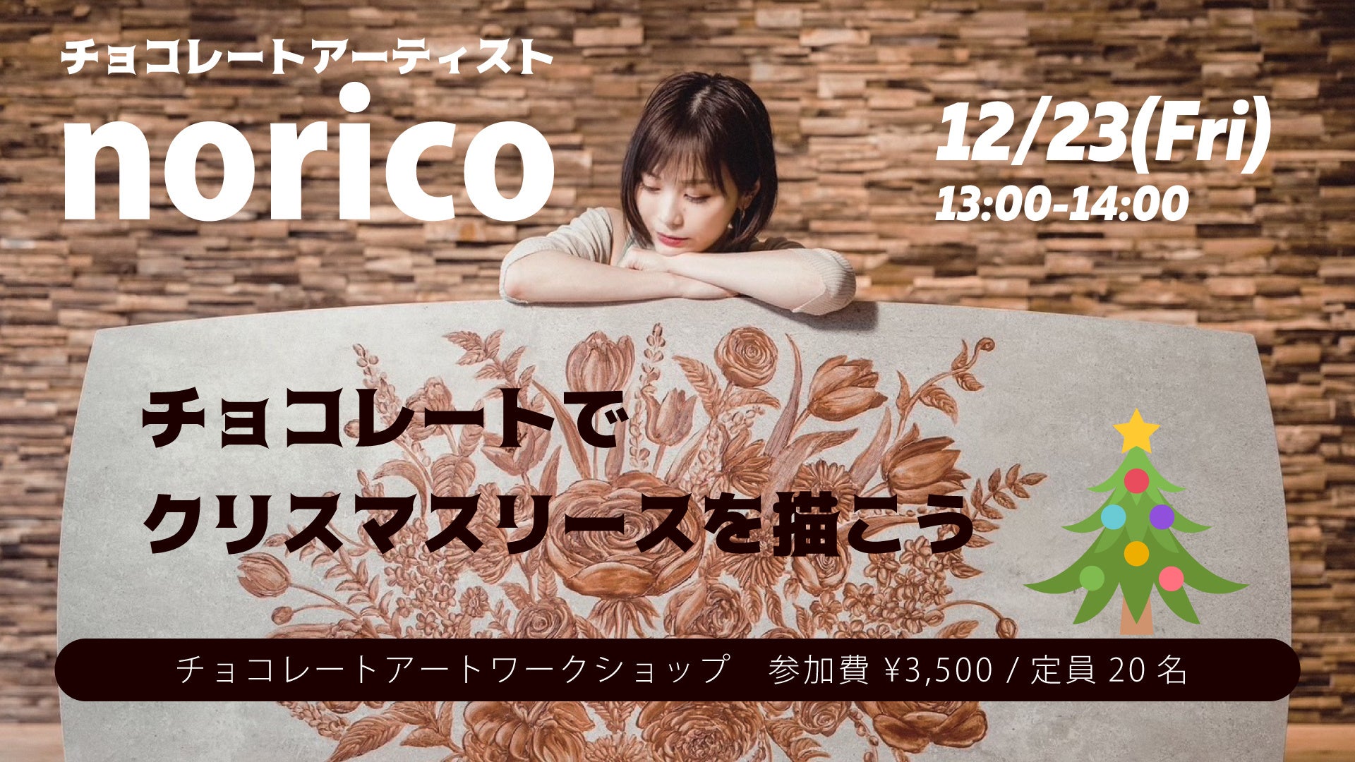 チョコレートアートの技法やお菓子のトッピングを使い、お皿にクリスマスリースを描きます。