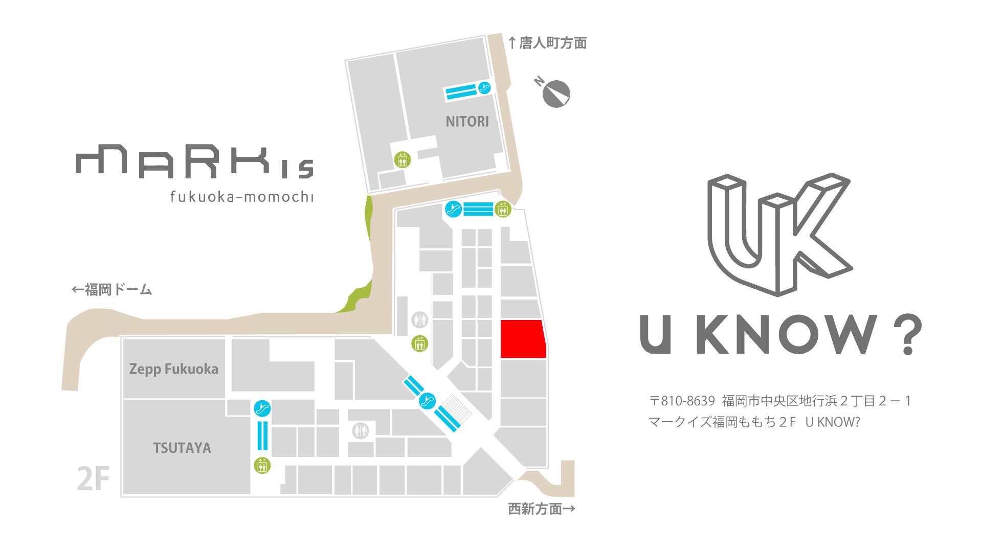 福岡市中央区のマークイズ福岡ももち 2F「U KNOW?」にて、午前10時より午後9時まで。
