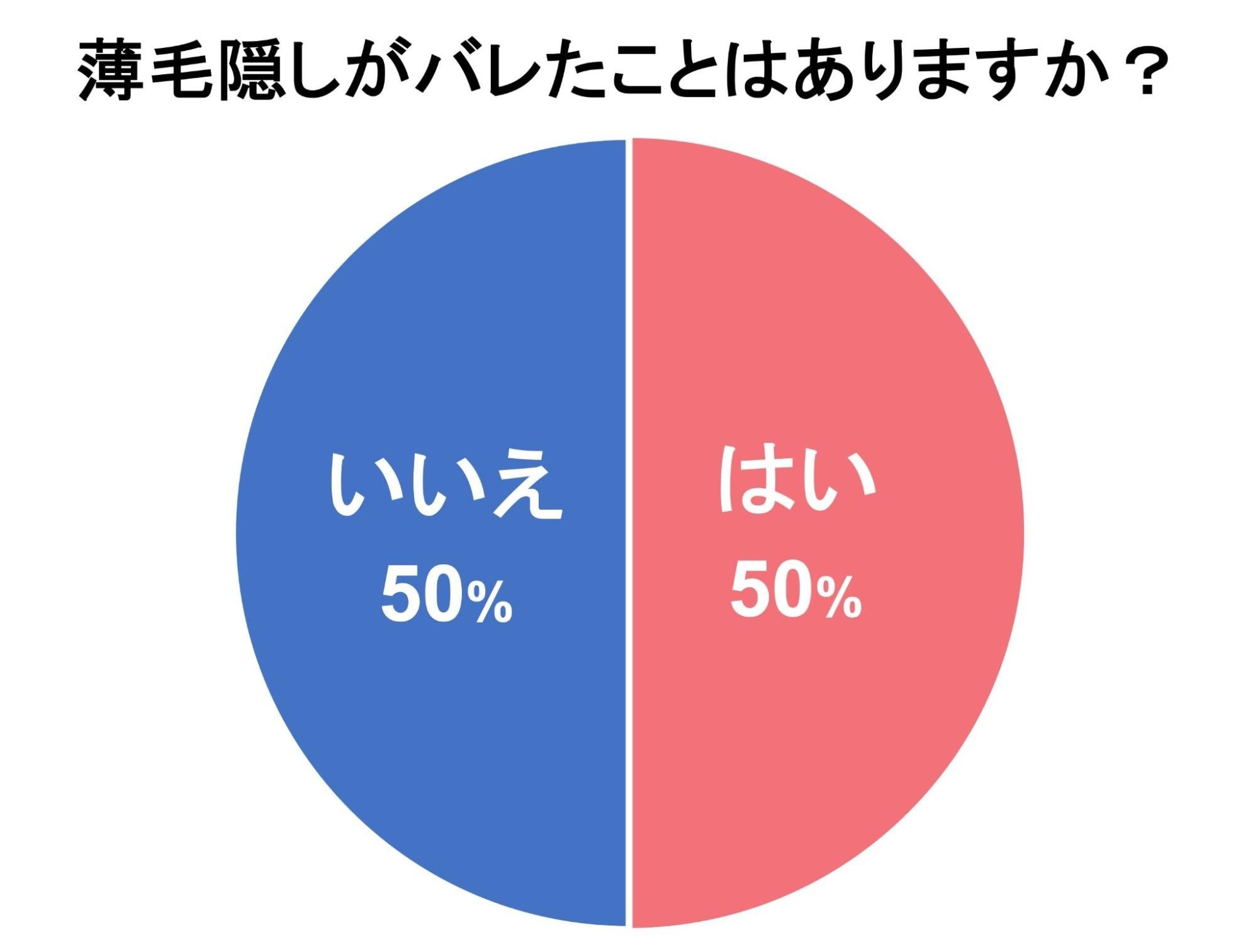 上記の薄毛隠しが周囲にバレた経験のある方・ない方の割合は、ちょうど半分に分かれました。薄毛に悩む多くの男性が薄毛隠しを試みている一方、実際に薄毛を隠せているかどうかは別問題のようです。