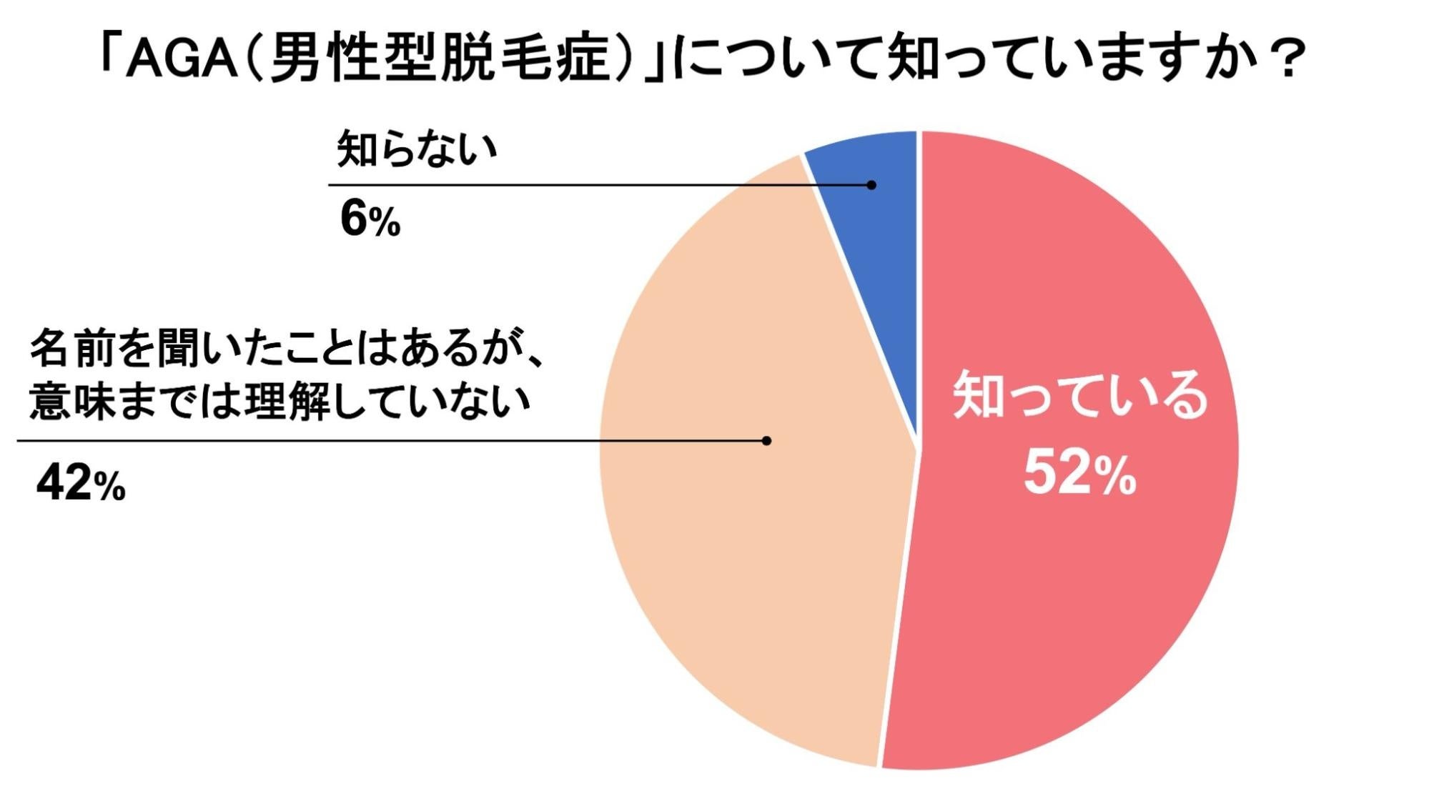 - 「AGA(男性型脱毛症)」の認知率は高いものの、治療してまで改善しようとしている男性は少数