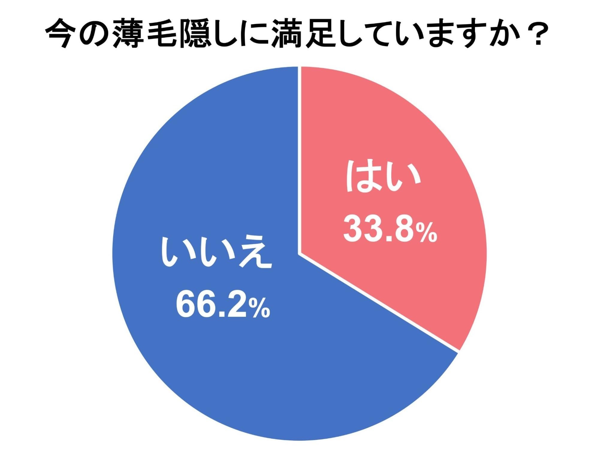 薄毛を自覚している男性の7割以上が薄毛隠しを行っているものの、そのうちの6割以上は今の薄毛隠しに満足していないことが分かりました。