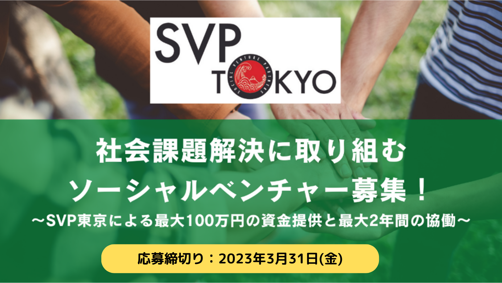 【3/31(金)まで!】SVP東京、2023年度投資・協働先ソーシャルベンチャーを募集