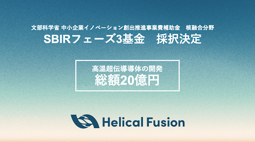 核融合スタートアップの株式会社Helical Fusion「文部科学省 中小企業イノベーション創出推進事業(SBIRフェーズ3)」に採択