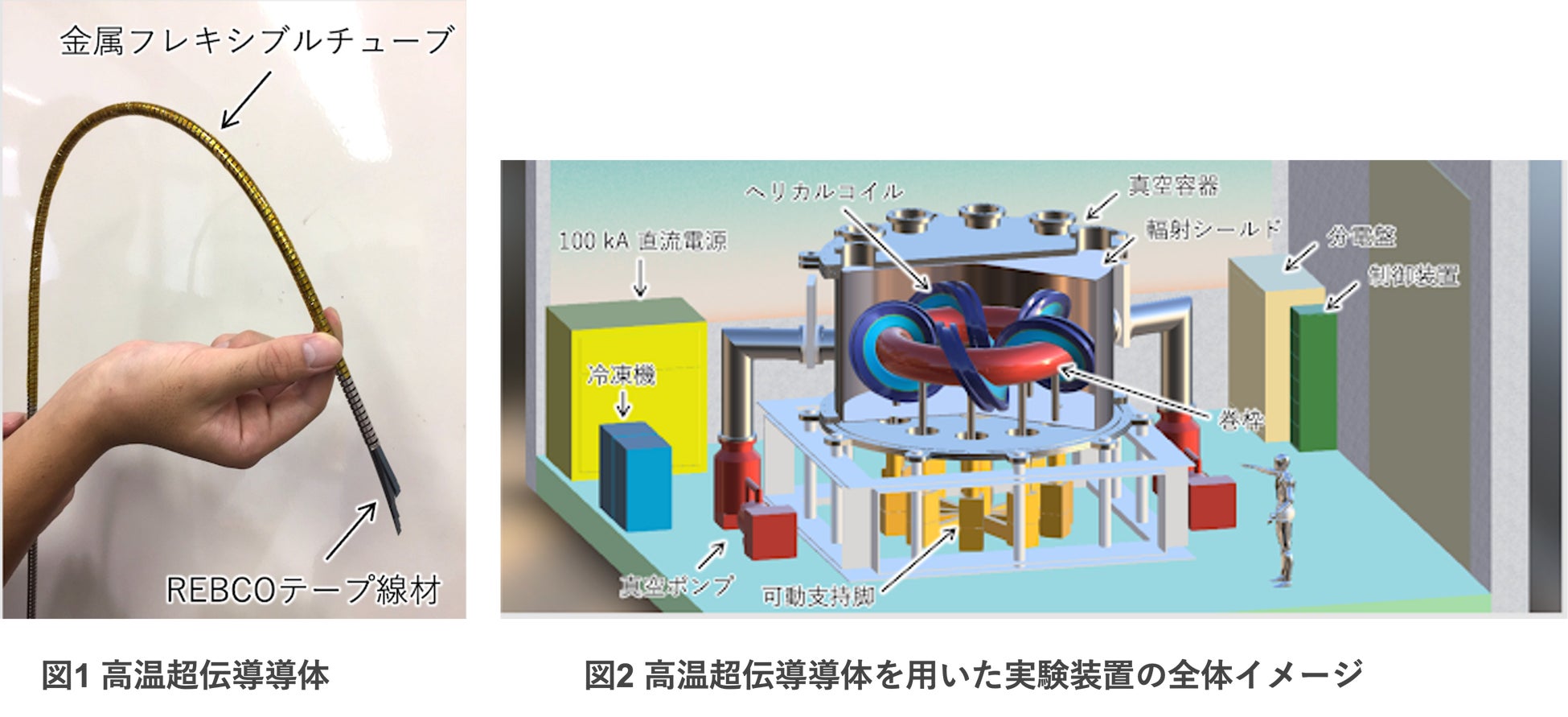 Helical Fusionは、ヘリカル方式による世界初の定常核融合炉の開発を目指しています。本事業では、同社が開発しているコア技術の1つである、核融合炉用高温超伝導導体(図1)の技術成熟度レベルをTRL 5から TRL 7に引き上げることを目的としており、研究開発および実証実験を、5年の研究期間で実施する計画です。本事業の採択により、核融合炉に関わるコア技術の研究開発を促進し、フュージョンエネルギーの早期実現を目指します。