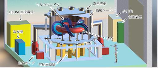 日本では、DNA に似た二重らせん構造の超伝導ヘリカルコイルを用いて高温のプラズマを安定に閉じ込めるヘリカル方式が生まれ、大きく育まれてきました。