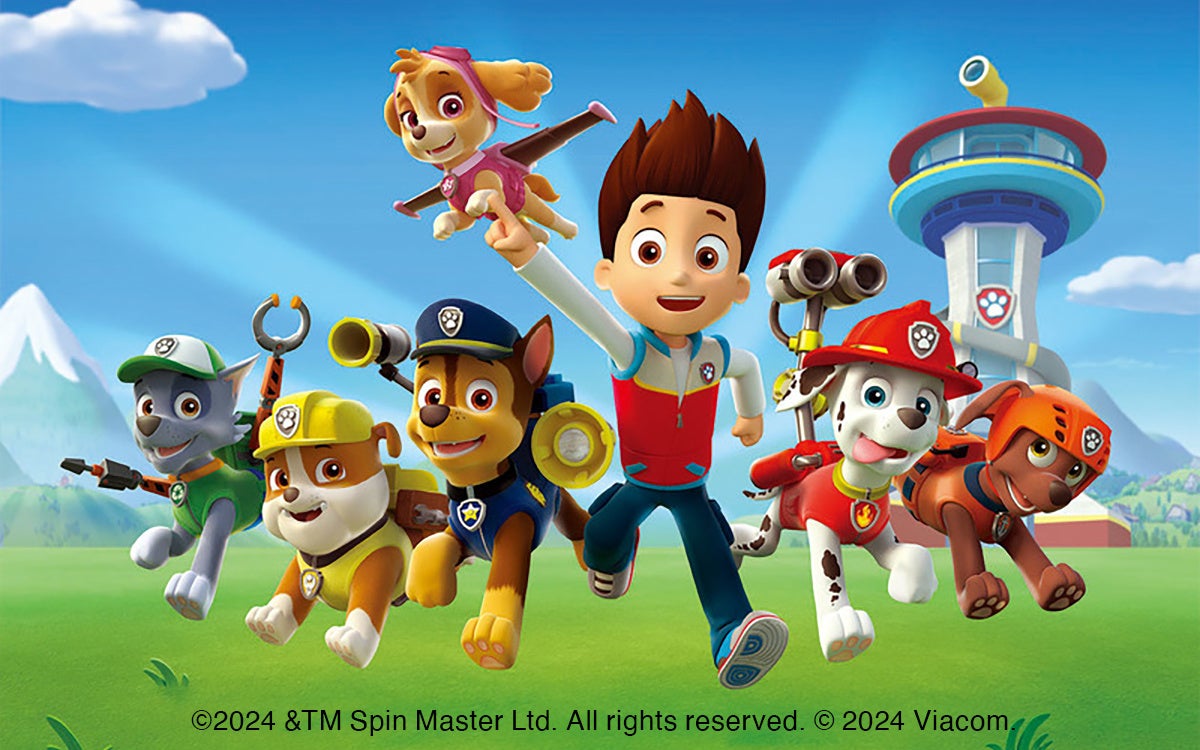 パウ・パトロールは、テレ東系6局ネットにて毎週金曜日ゆうがた5時55分から放送中。また、Prime VideoのニコロデオンチャンネルやParamount+など、各種配信サービスでもご覧いただけます。