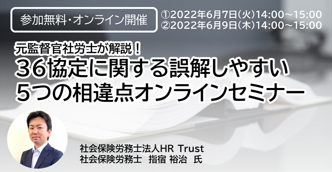 元監督官社労士が解説!36協定に関する誤解しやすい5つの相違点オンラインセミナー【2022年6月7日・9日開催】