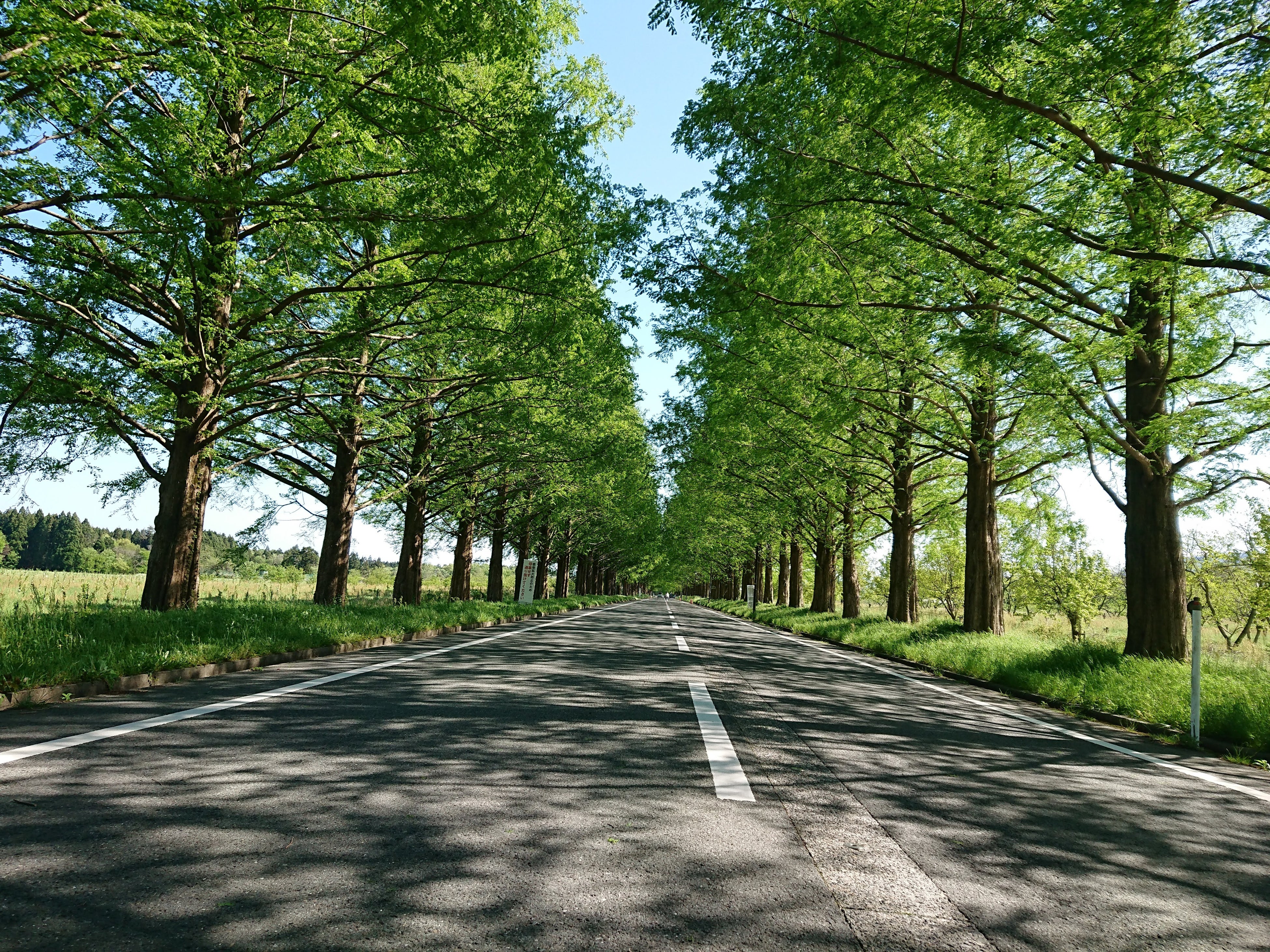 「新・日本街路樹百景」に選定され、約2.4kmにわたりメタセコイアが約500本植えられ、遠景となる野坂山地の山々とも調和し、マキノ高原へのアプローチ道として高原らしい景観を形成しています。(引用 (公社)びわ湖高島観光協会)