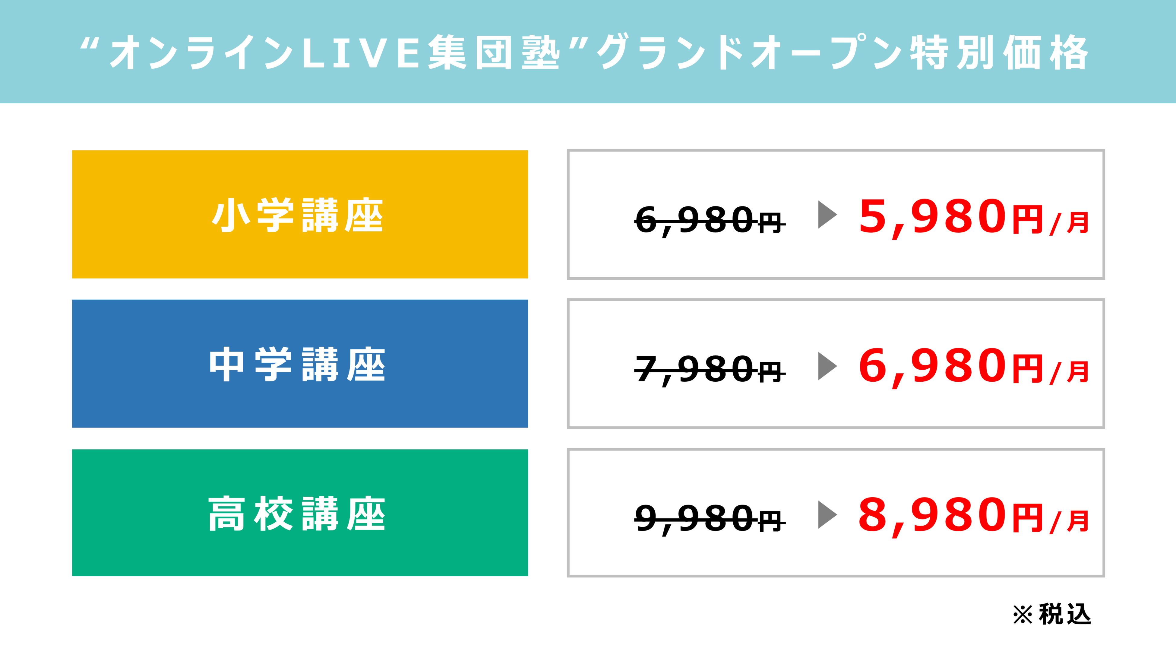 中学講座:通常価格 7,980円/月 ▶ 特別価格 6,980円/月