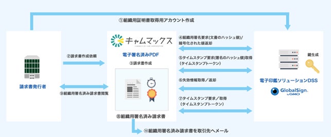 この度、国内での電子請求書普及に向けた第1弾の取組として、GMOグローバルサインの電子署名サービス「電子印鑑ソリューションDSS byGMO」とキャムのERPサービス「キャムマックス」の連携を開始することといたしました。