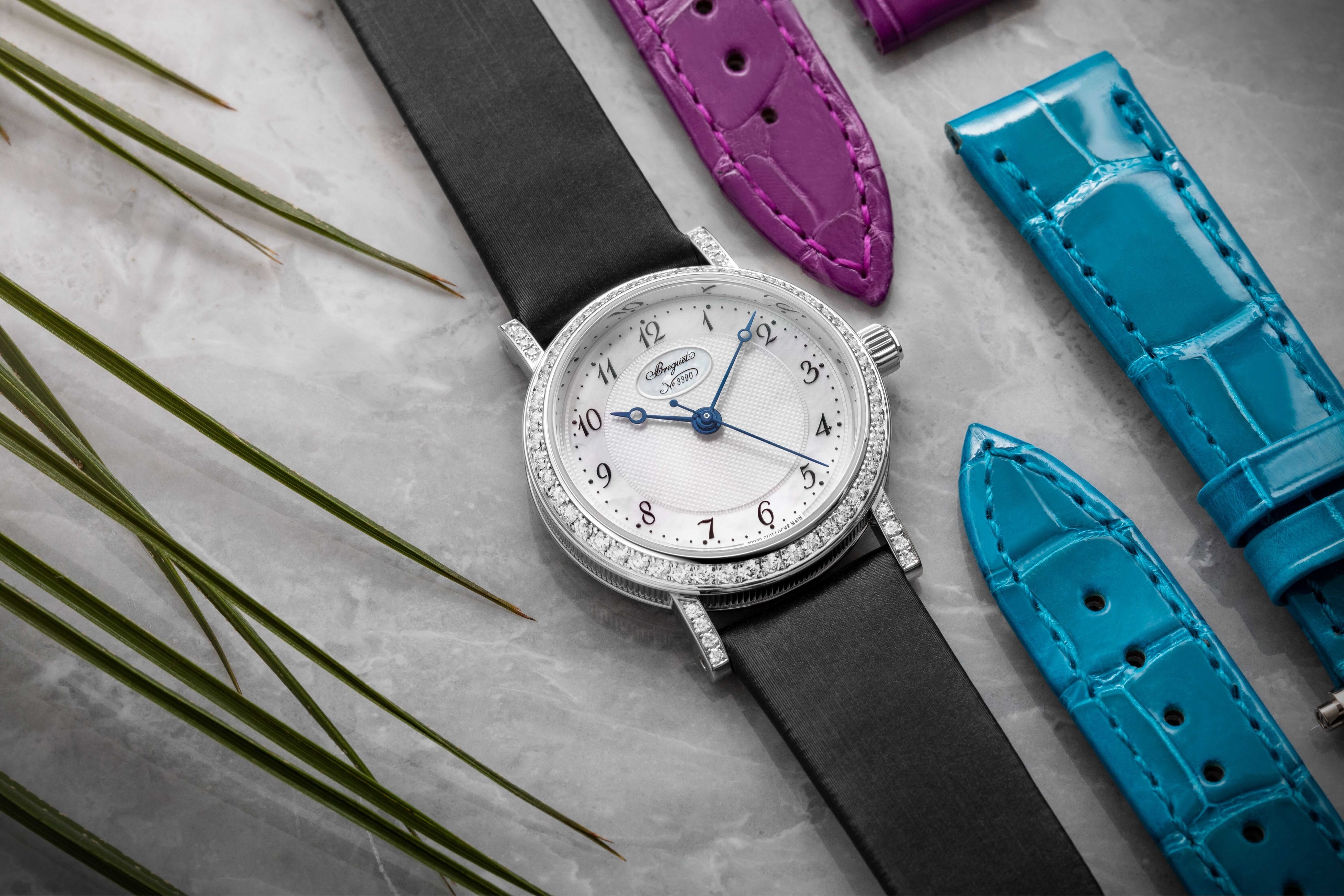 新しい「クラシック レディ」に採り入れたのは、現代的な感覚で大胆に個性を主張するダイヤルと、お好みでストラップ交換ができる仕組み。ホワイトゴールドとローズゴールドが揃うこの「クラシック 8068」がブレゲの最新コレクションに仲間入りします。