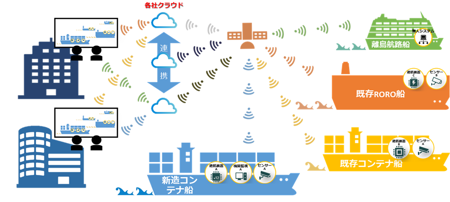 将来の内航業界を支える次世代船を設計するとともに無人運航船が支える将来の内航業界を想定した船陸オペレーション実証(異なる4隻の船舶(無人運航機能を全て備えたFull Packageの新造コンテナ船、無人運航機能の一部を備えた既存コンテナ船及び既存RORO貨物船並びに既存離島航路船)及び2つの陸上支援センターを利用)を実施する。