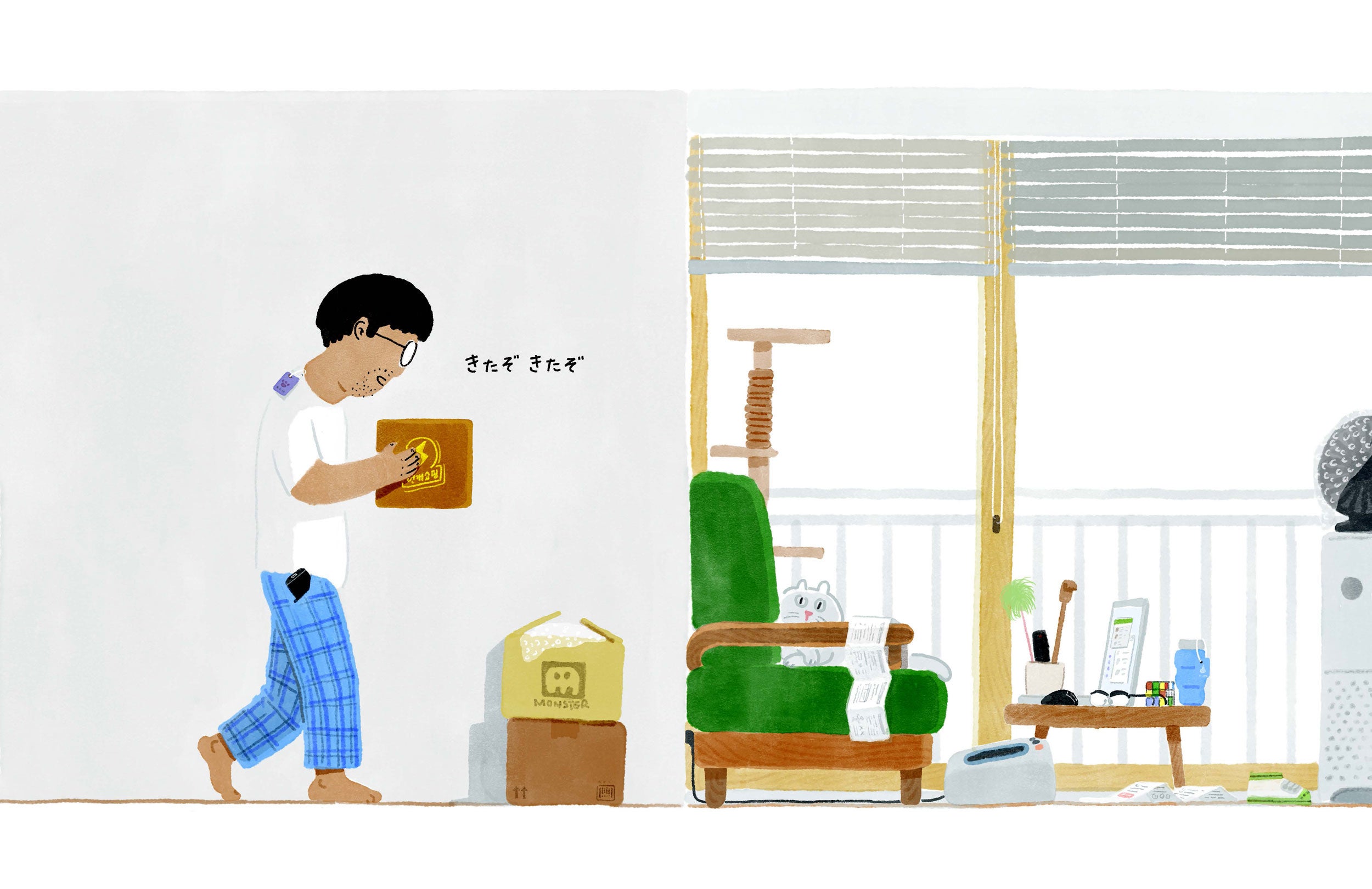 ある日、宅配の箱を捨てようとゴミ箱を開けてみたら、中はもうダンボールでいっぱいになっていました。それをみた瞬間、ダンボールたちが世界を食べつくすイメージがわいてきたのです。そのダンボールたちのあとを追いかけるうちに、この話がうまれました。これは終わりのないお話です。エンディングはみなさんが考えてくれませんか?
