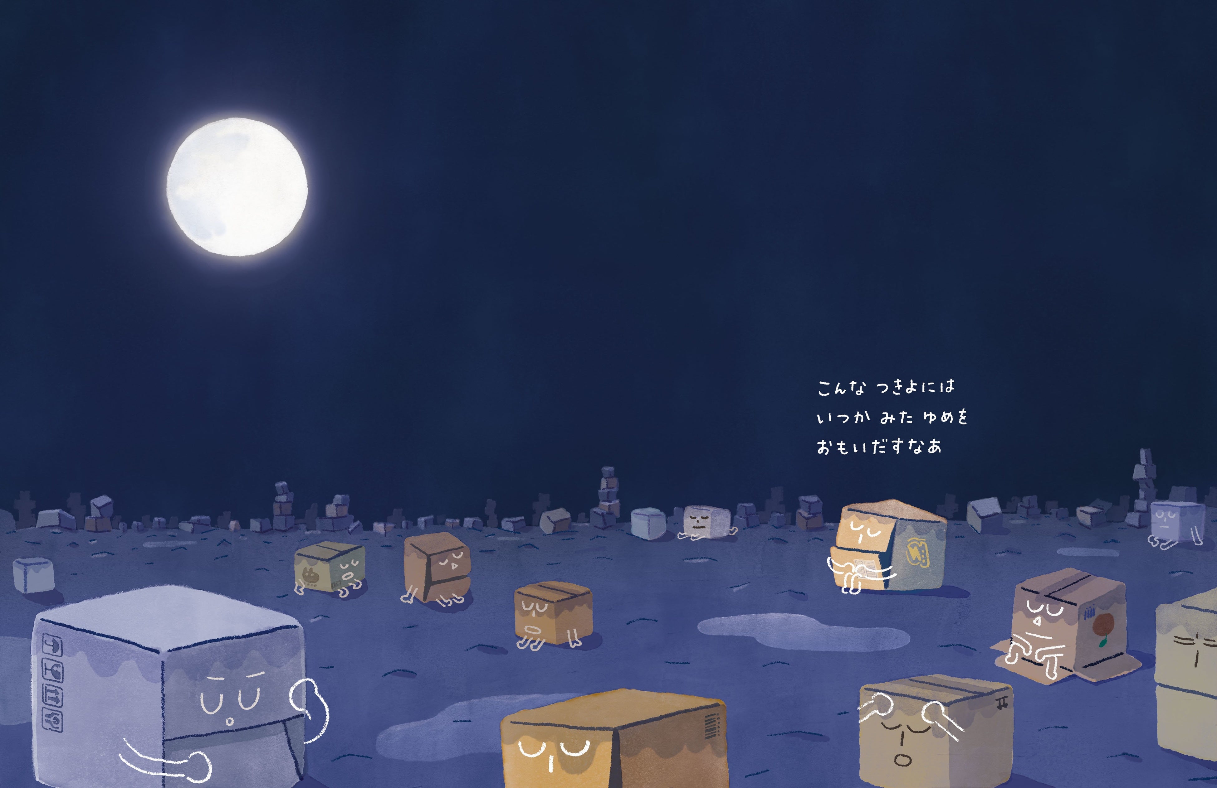 ものをたくさん買ってはたくさん捨てる消費スタイルはもう終わりにしたいと考えていたところに、タイミングよくこの絵本がやってきてくれました。ダンボールたちが月を見ながら木だったころを思う場面がわたしのお気に入りです。