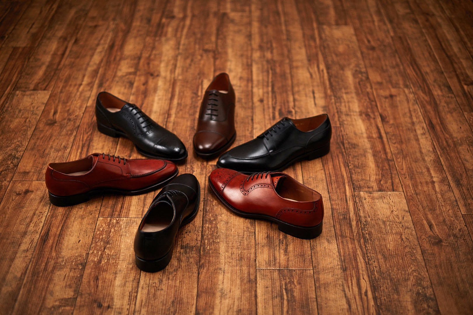 日本人の足型を研究した木型やハンドフィニッシュなどのテクニックを駆使し、昔ながらの手作業により生み出される1足1足はエレガントで履き心地よく、美しい輝きとシルエットに仕上がっています。