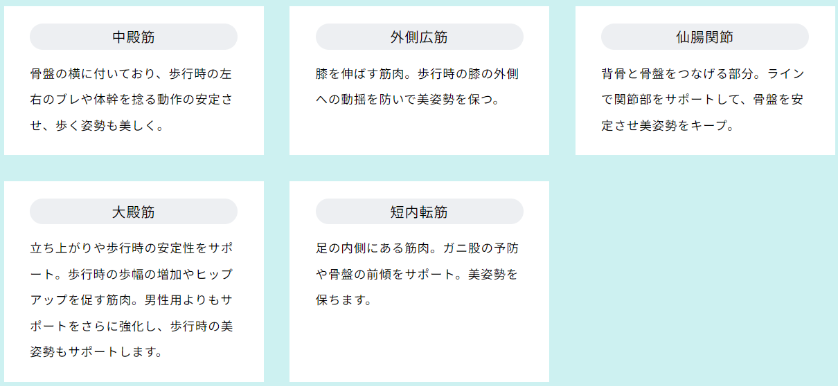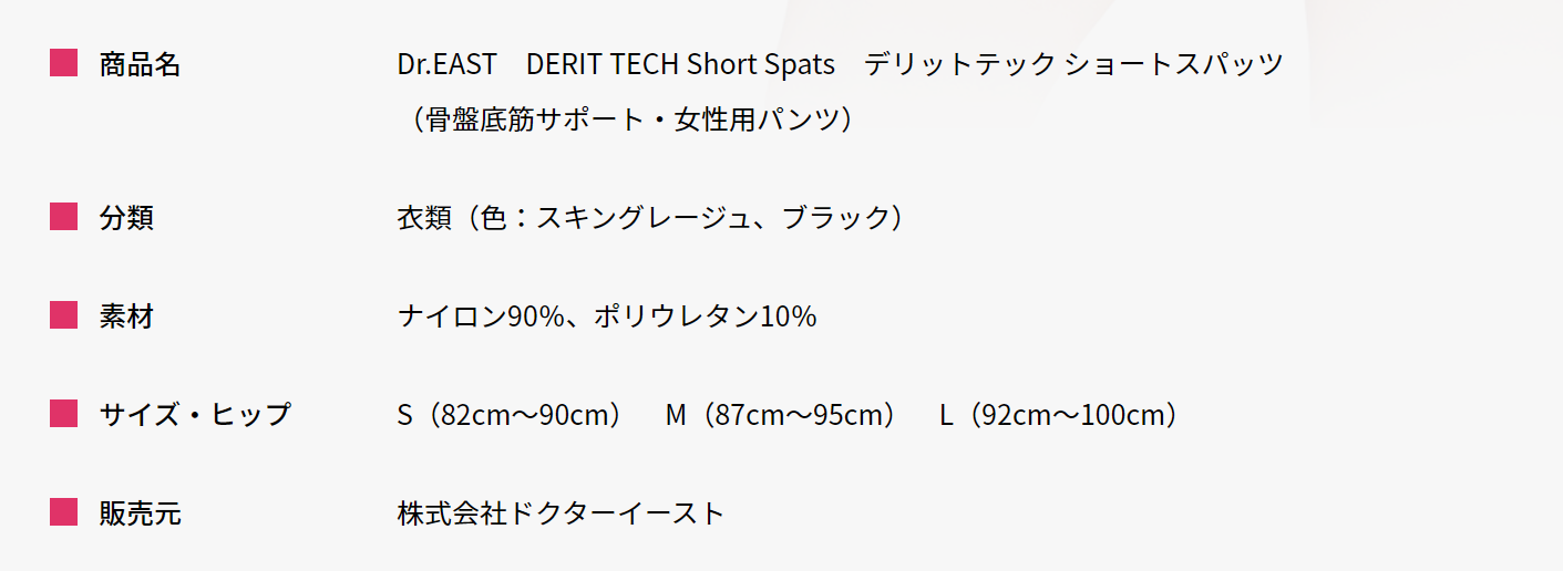 女性は男性に比べて骨盤が横広で安定しづらく、筋肉が少なくて力を入れづらいという身体の特徴をもっています。そこで、なんとか効率良く身体を支えられるものを作りたくDERIT TECHを開発しました。DERIT TECHは圧迫や無理に矯正して姿勢を変えるのではなく、筋肉がサポートされた結果姿勢を変えるという動きやすさと身体つくりの両方を実現した商品です。日常生活に取り入れやすいように普通のパンツに近い、常にはいていても違和感のない素材感やはき心地になっていますので、まずは2週間はき続けてみてください。身体が楽になった。重さや違和感が無くなっている。などの変化を感じて頂けると思います。