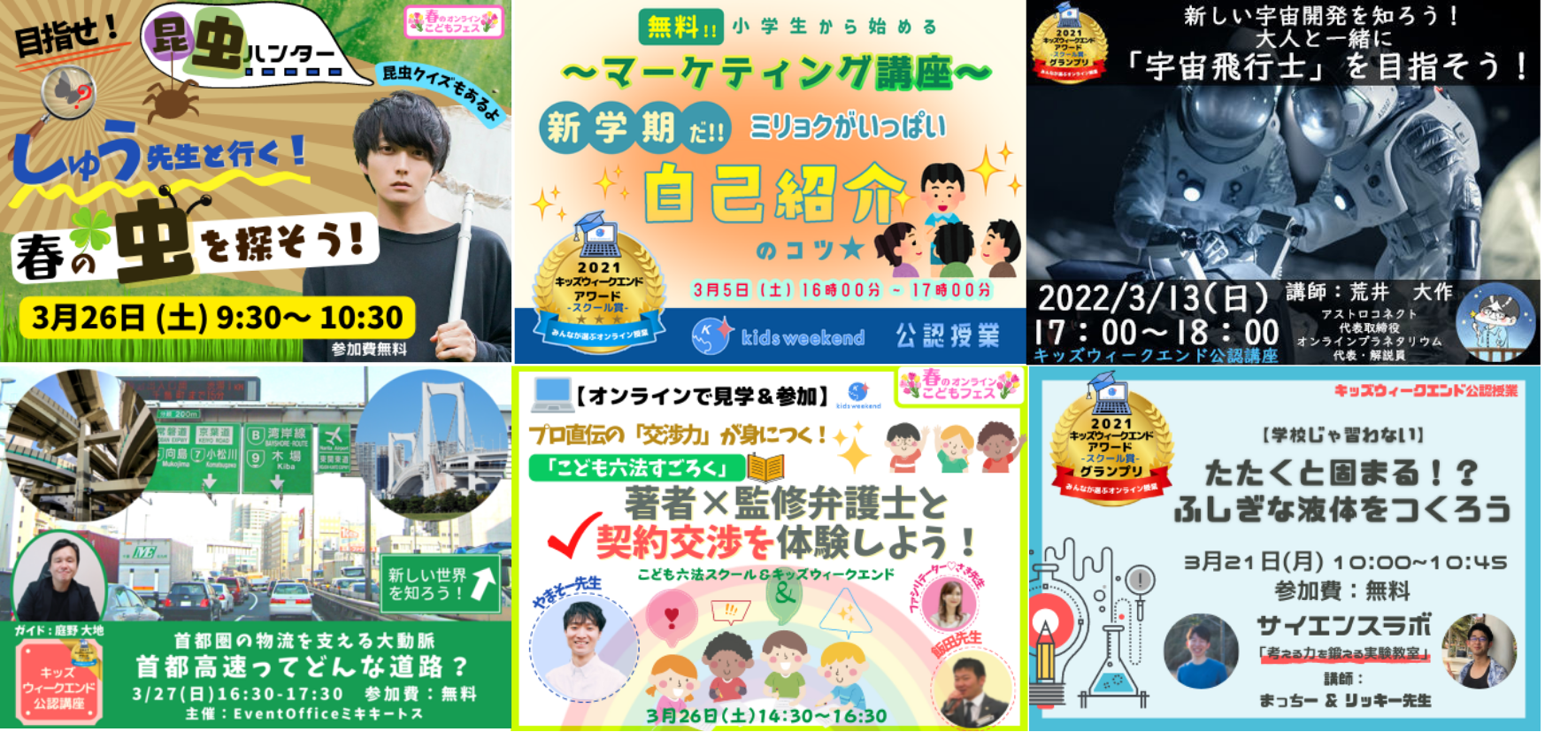 子ども向け「教育×オンライン」の分野では、日本最大級のプラットフォームである「キッズウィークエンド」(運営会社:キッズウィークエンド株式会社。本社:東京都中央区、代表取締役:三浦里江)は、3月5日(土)から4月3日(日)にかけて、「キッズウィークエンド 春のオンラインこどもフェス2022」を開催します。対象は未就学児・小学生で、参加費は各講座とも原則無料です。