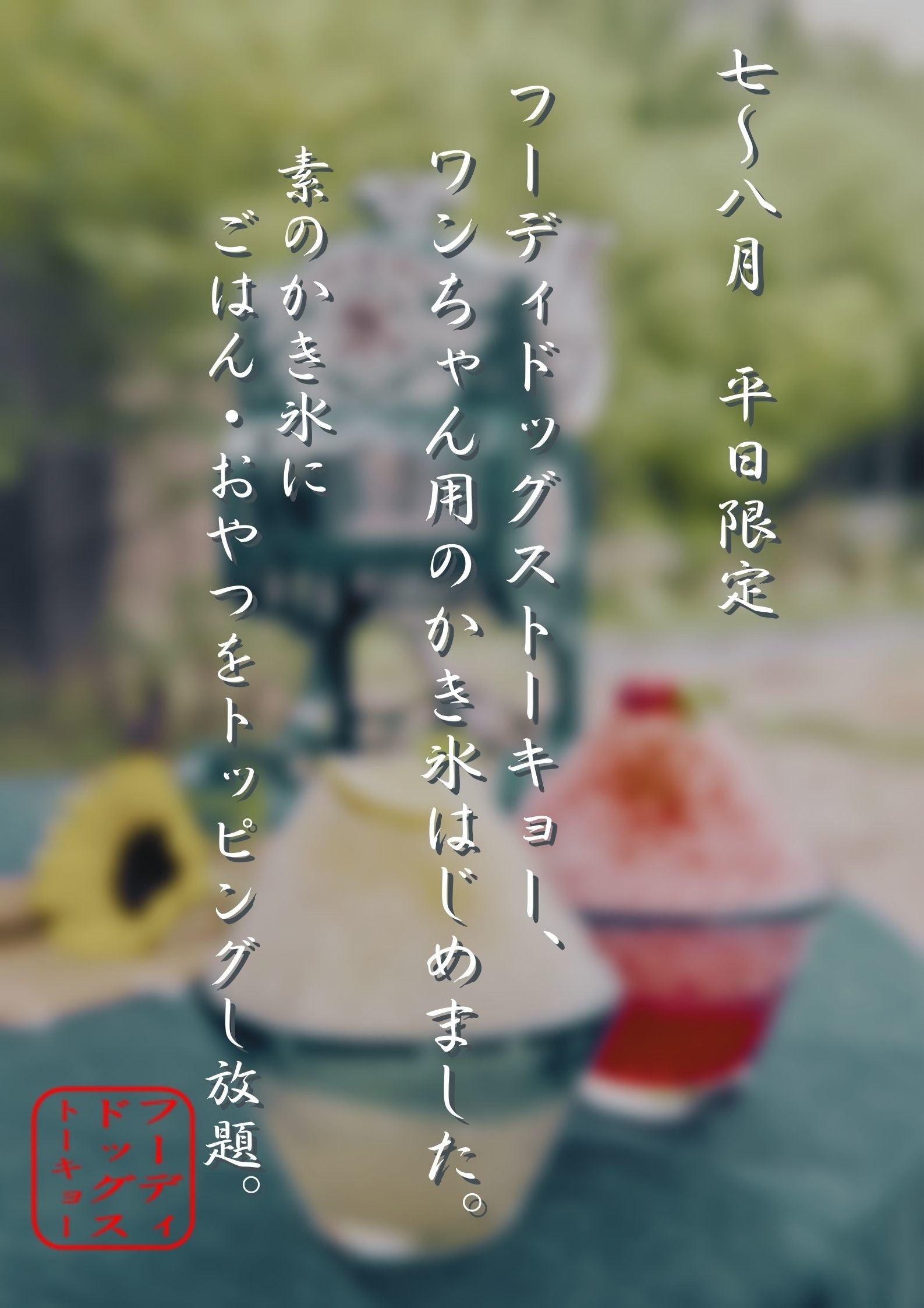 株式会社ロスターベル(所在地:東京都港区、代表取締役:高橋直人)は、プレミアムドッグフードを中心に展開する事業ブランドFoodie Dogs TOKYOにて、7~8月の期間、平日広尾店にご来店いただいたワンちゃん向けに無料でかき氷を提供するサービス“ワンちゃん用のかき氷はじめました。”を7月4日(月)より開始します。