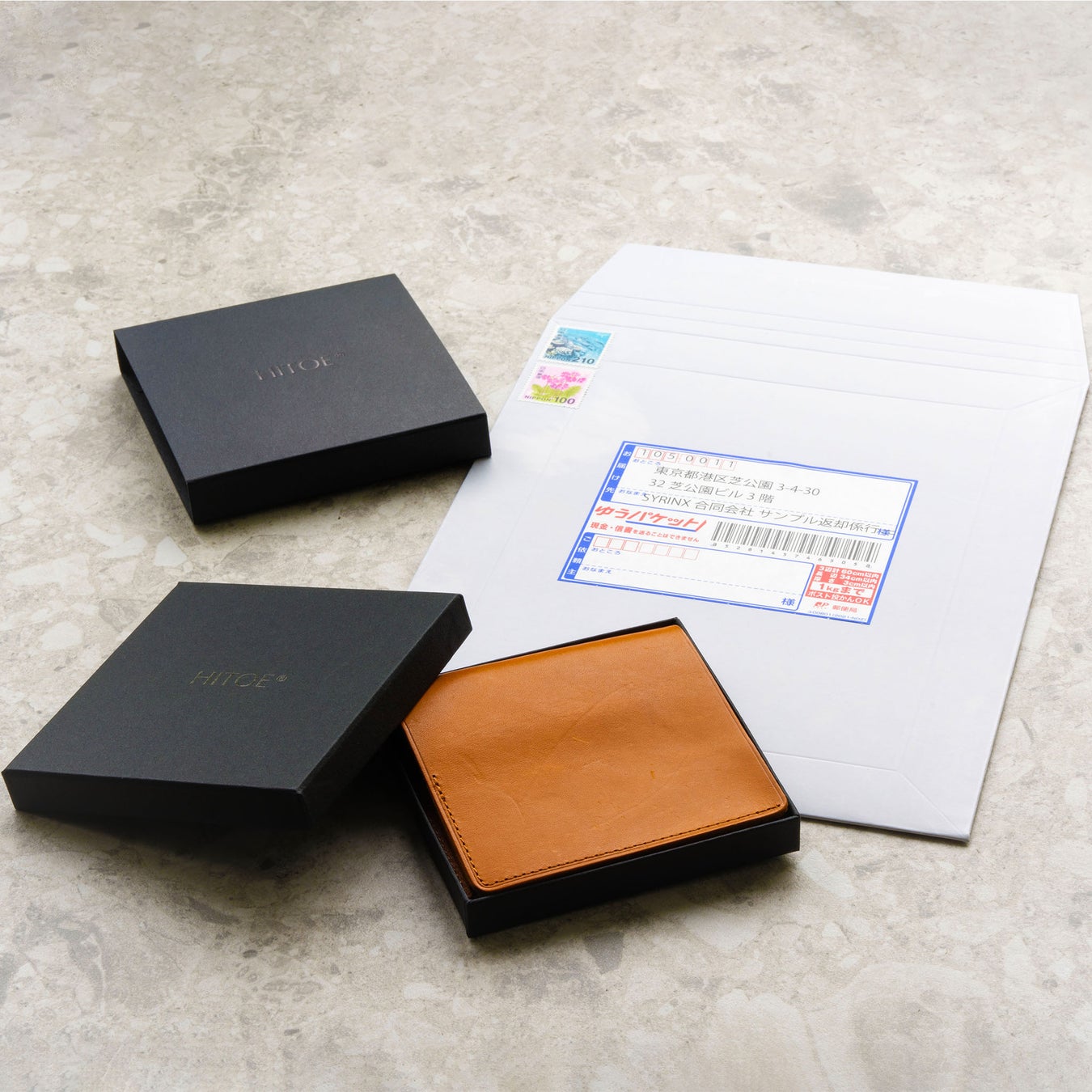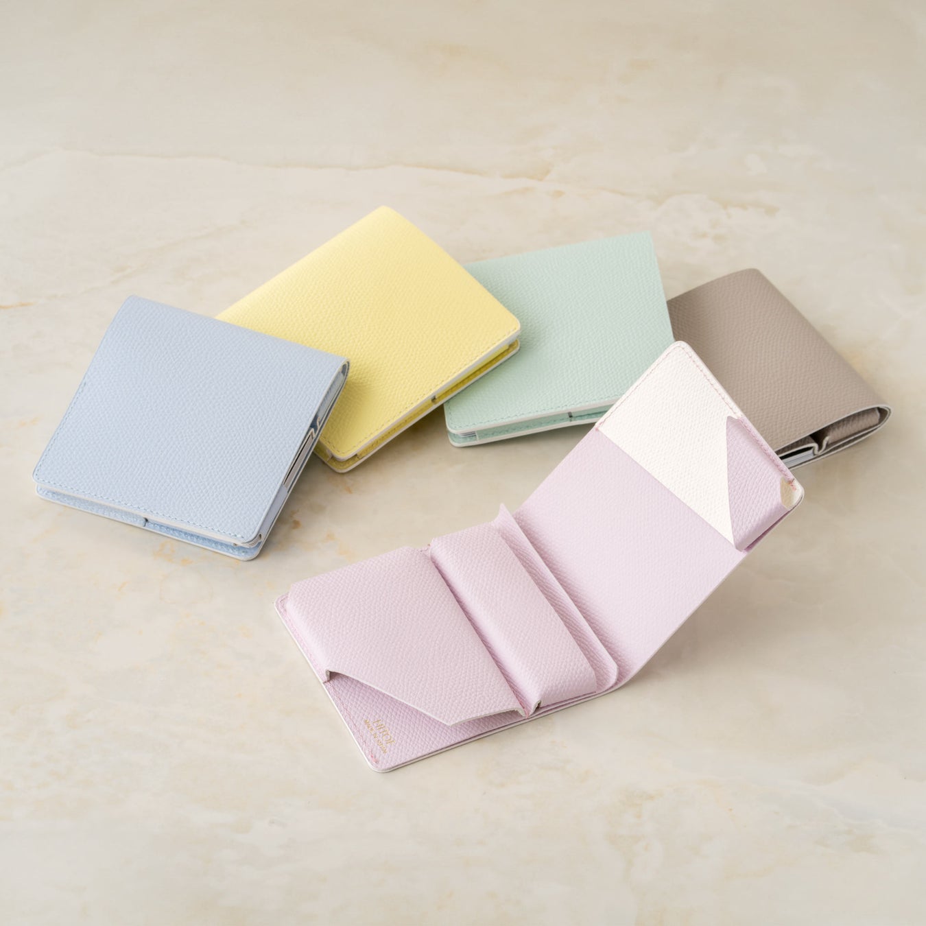 環境に配慮した2つの革新素材を融合した、ミニマルな二つ折り財布。