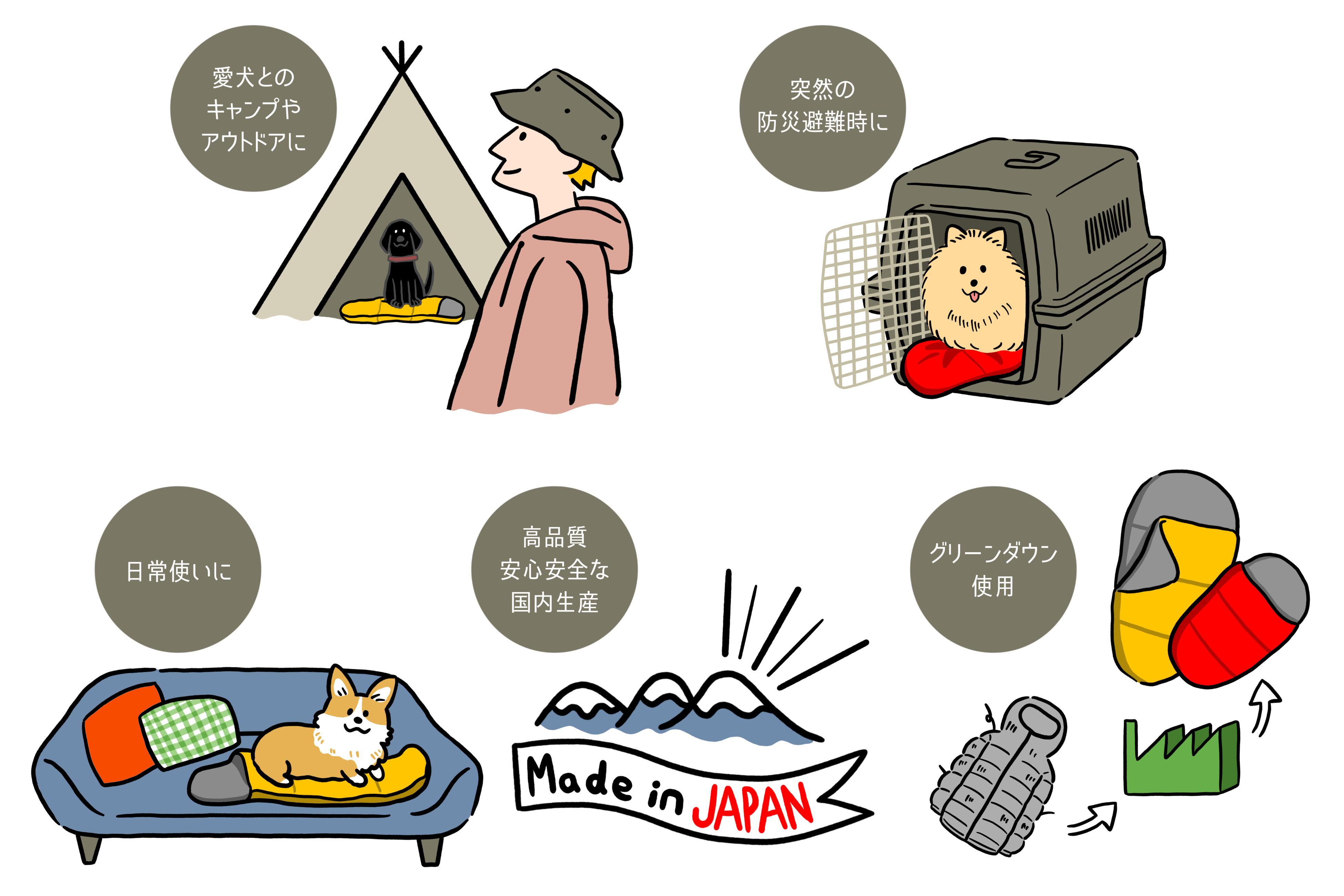 キャンプの時はもちろん、防災時にも、大切な家族である愛犬が居心地よく眠れる場所を提供します。