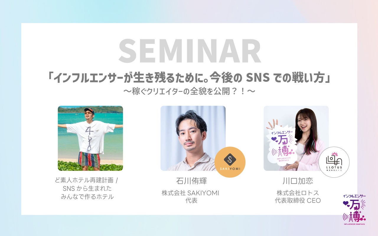④16:30-17:00 セミナーステージ「インフルエンサーが生き残るために。今後のSNSでの戦い方」