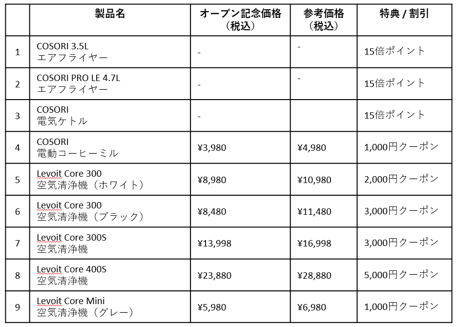 ■その他キャンペーン対象のCOSORI&Levoit製品