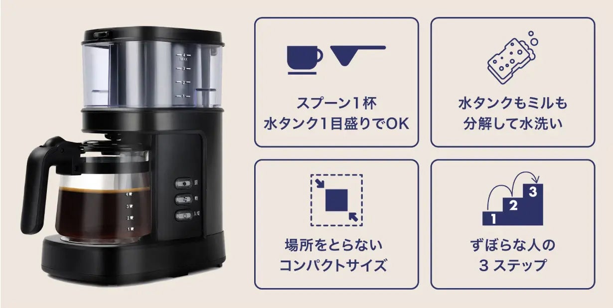 『"ずぼら"なコーヒー好きに送る、台湾生まれの全自動コーヒーメーカー』