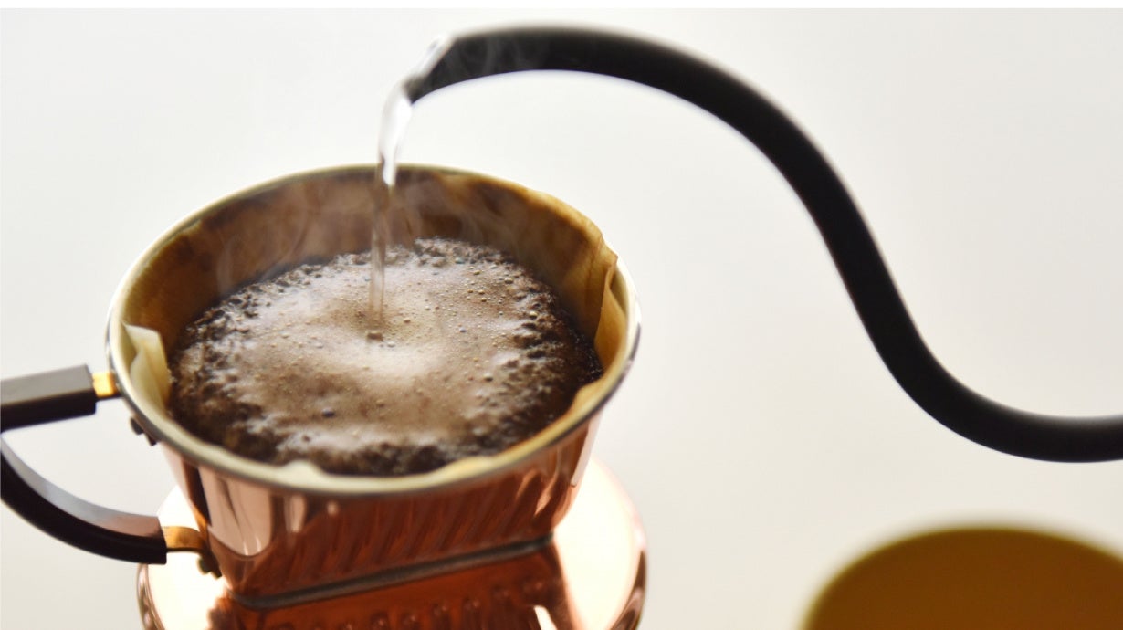 コーヒーを淹れる際の適温とされている約93℃でコーヒーをドリップ。