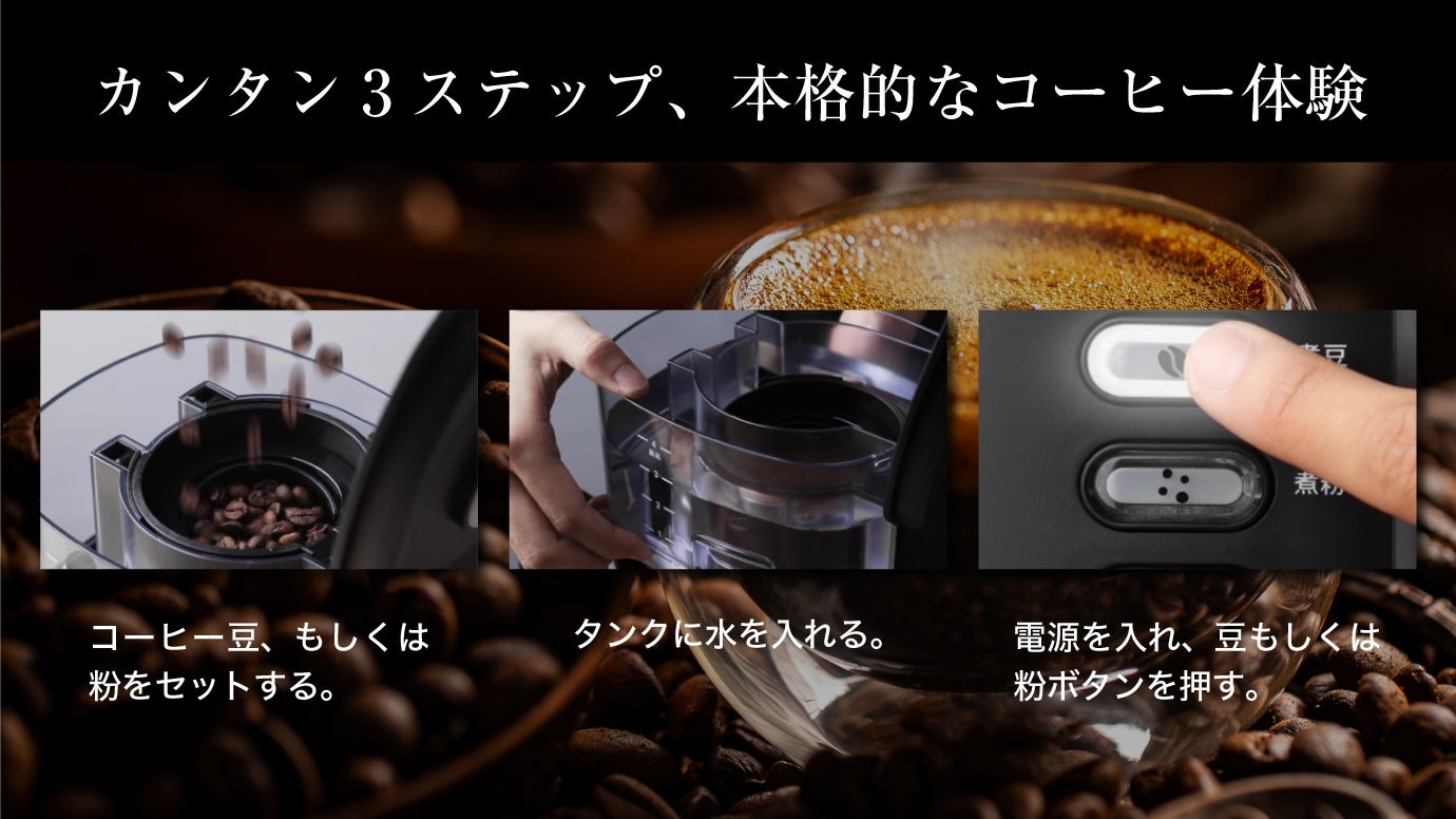 操作はとても簡単。コーヒー豆と水を入れたらスイッチを押すだけ!