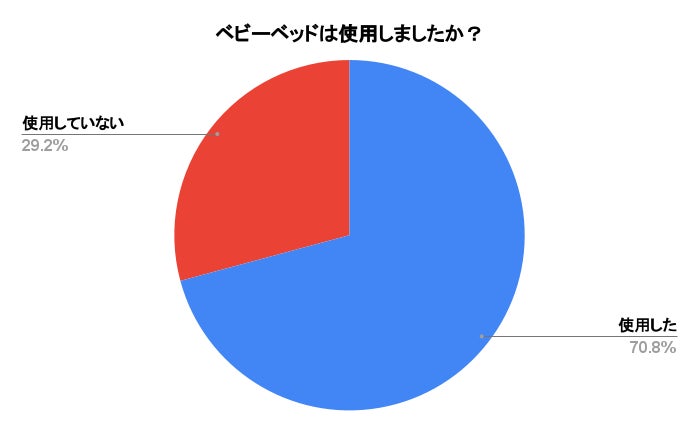 全体の70.8%の方がベビーベッドを使用したと回答しています。