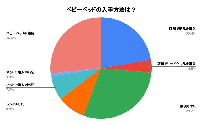 しかし、ベビーベッドを「譲り受けた」ご家庭が最も多く、短期間しか使わないけど、赤ちゃんにとって重要なアイテムを、みんなでシェアしていく考え方はとても素敵な事で、今後も続いて欲しい文化だと思いました。