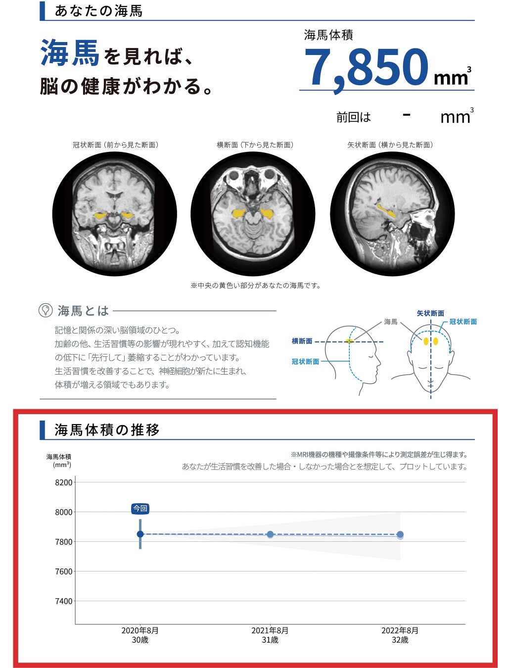 海馬測定MRI検査「ブレインスイート」リニューアル 記憶を司る「海馬」の体積変化 経年グラフで確認可能に