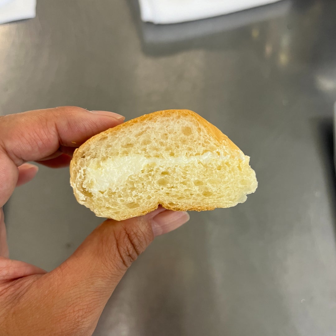 甘くないふわふわのコッペパン、端までたっぷり塗られた程よい甘さのクリーム。