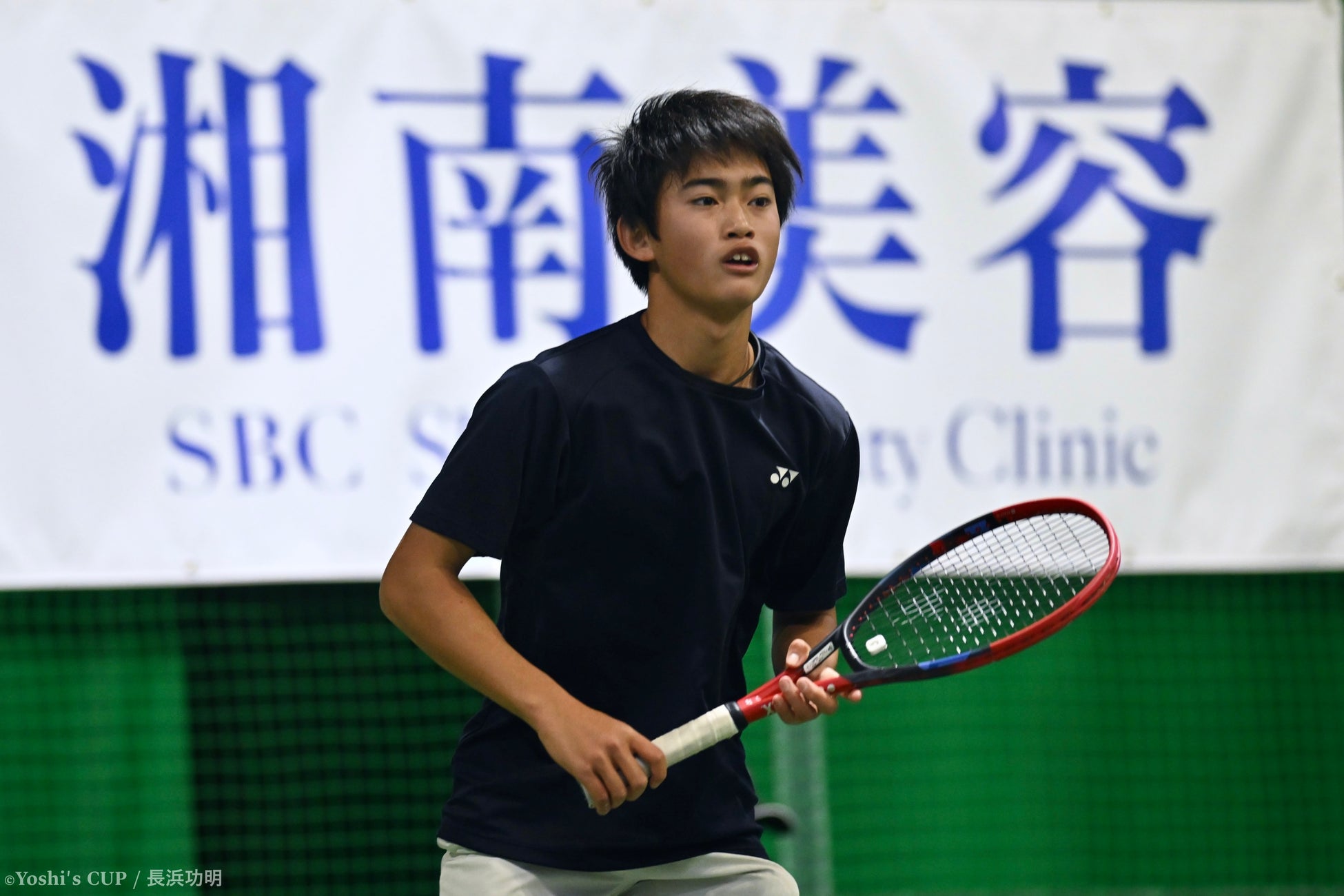 第1セットは、そのような戦績が精神面にも影響したか、強気に攻める田畑が6-3で制する。ただ、サービスキープが続いた第2セットの中盤で、田畑に少しの迷いが生じた。その隙を逃さぬ川西が、攻勢に出る。「この1年で5センチ伸びた」という上背を生かして高い打点でボールを叩き、第8ゲームをブレーク。第2セットを6-3で奪い返すと、ファイナルセットも序盤の5ポイント連取で主導権を握る。「田畑君に勝ちたい気持ちが、優勝への緊張を上回った」と熱っぽく口にした川西が、10ー4でタイブレークを制し、第3回Yoshi’s CUPの頂点に。最後、ドロップショットで相手をつり出しパッシングショットを叩き込むと、ボールの行方をしかと見届け、身体を折り曲げ咆哮をあげた。