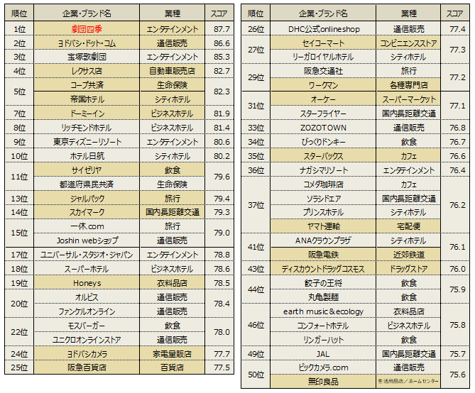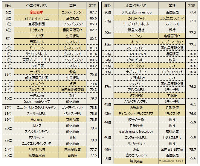 ・また、特別調査(上記表参照)業種の企業・ブランドは、年間総合順位に含まれません。