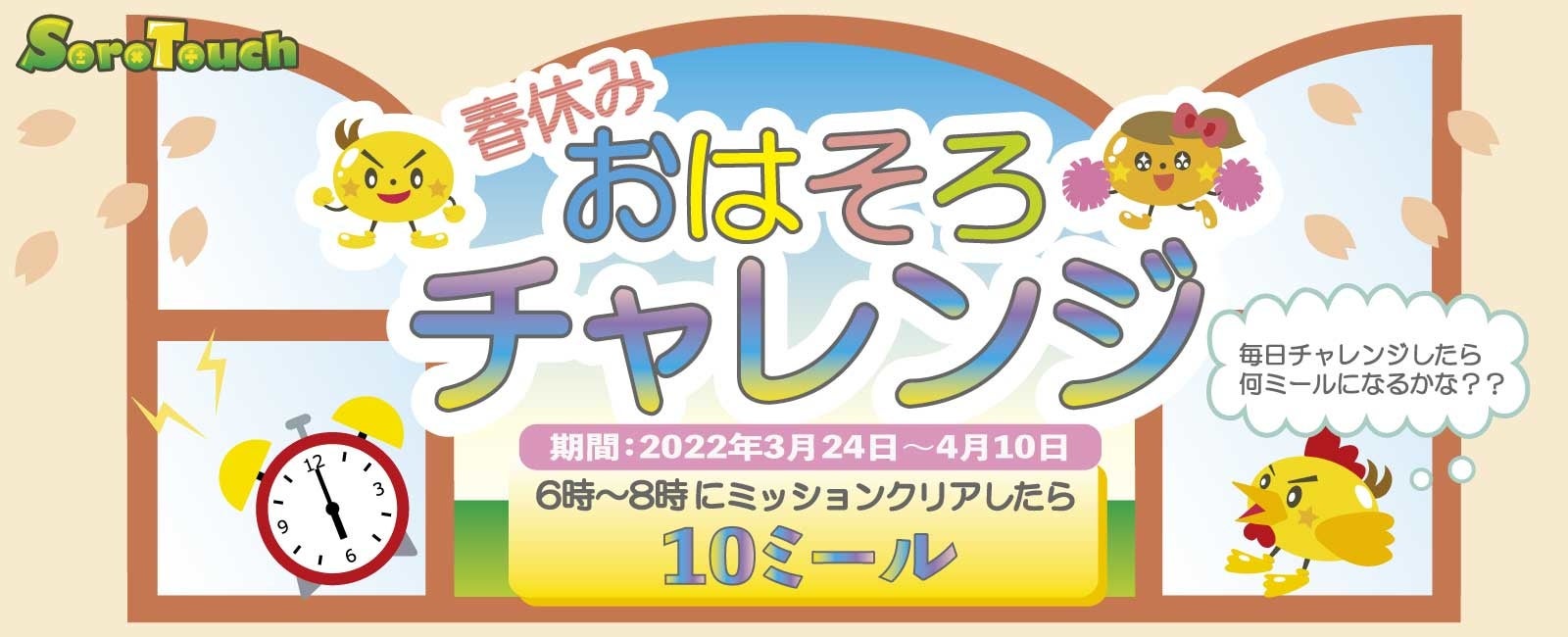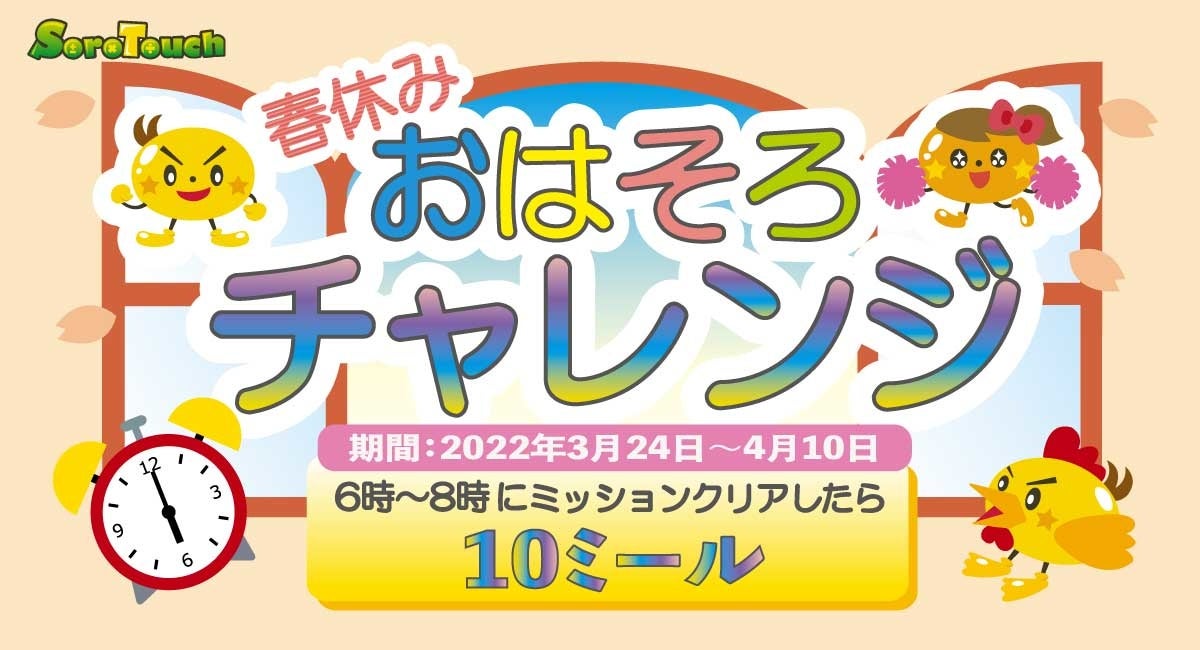 そろタッチで春休みの生活リズムを整えよう!「おはそろチャレンジ」早起きイベント、明日より開催!