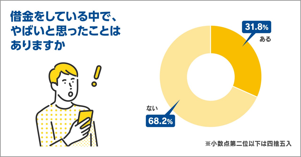 「借金をしている中で、やばいと思ったことがある」と回答した人は借金をしている770名のうち245名で、全体の31.8%でした。