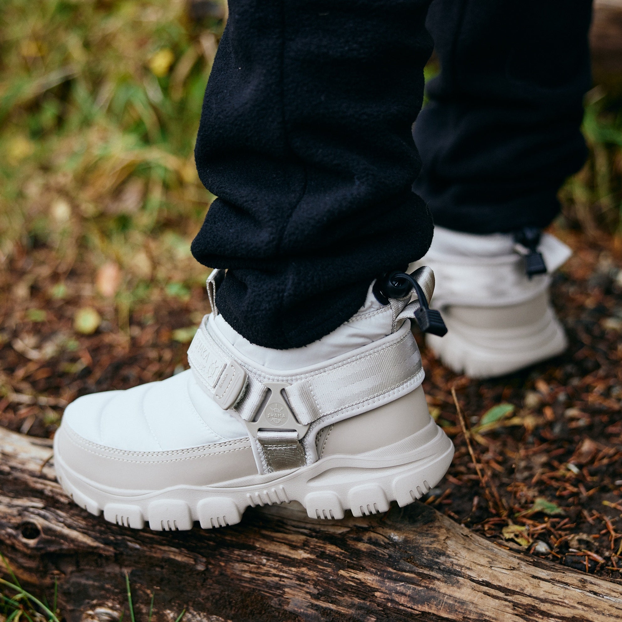 アッパーに撥水性と透湿性に優れたCOMFORTAS®WRと再生PET素材のECOPET®を組み合わせたサステナブルファブリックを採用。断熱性と透湿性を誇る高機能素材の3M THINSULATE ™の中綿で暖かさを保持。