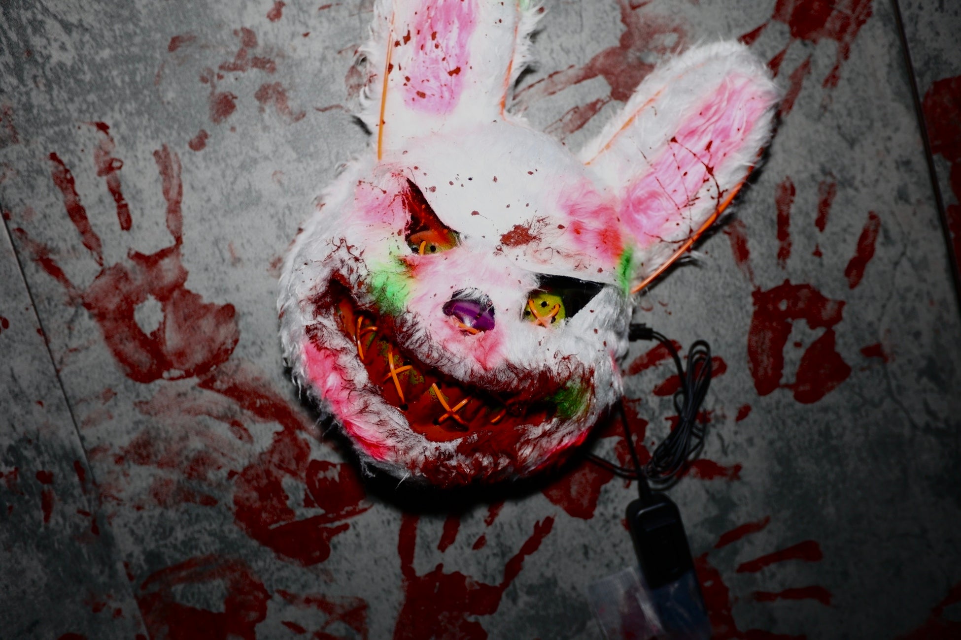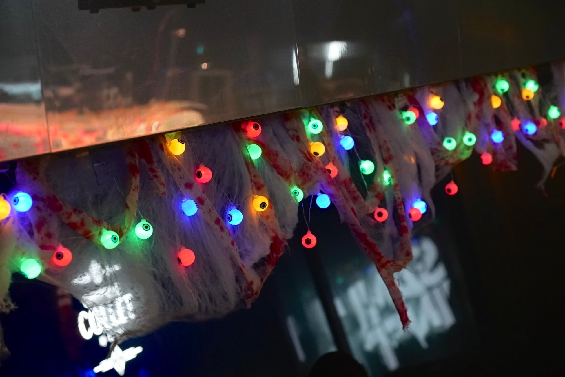 フロアのネオンと、ちょっぴりホラーな装飾が合わさり、幻想的で非日常な空間に…!