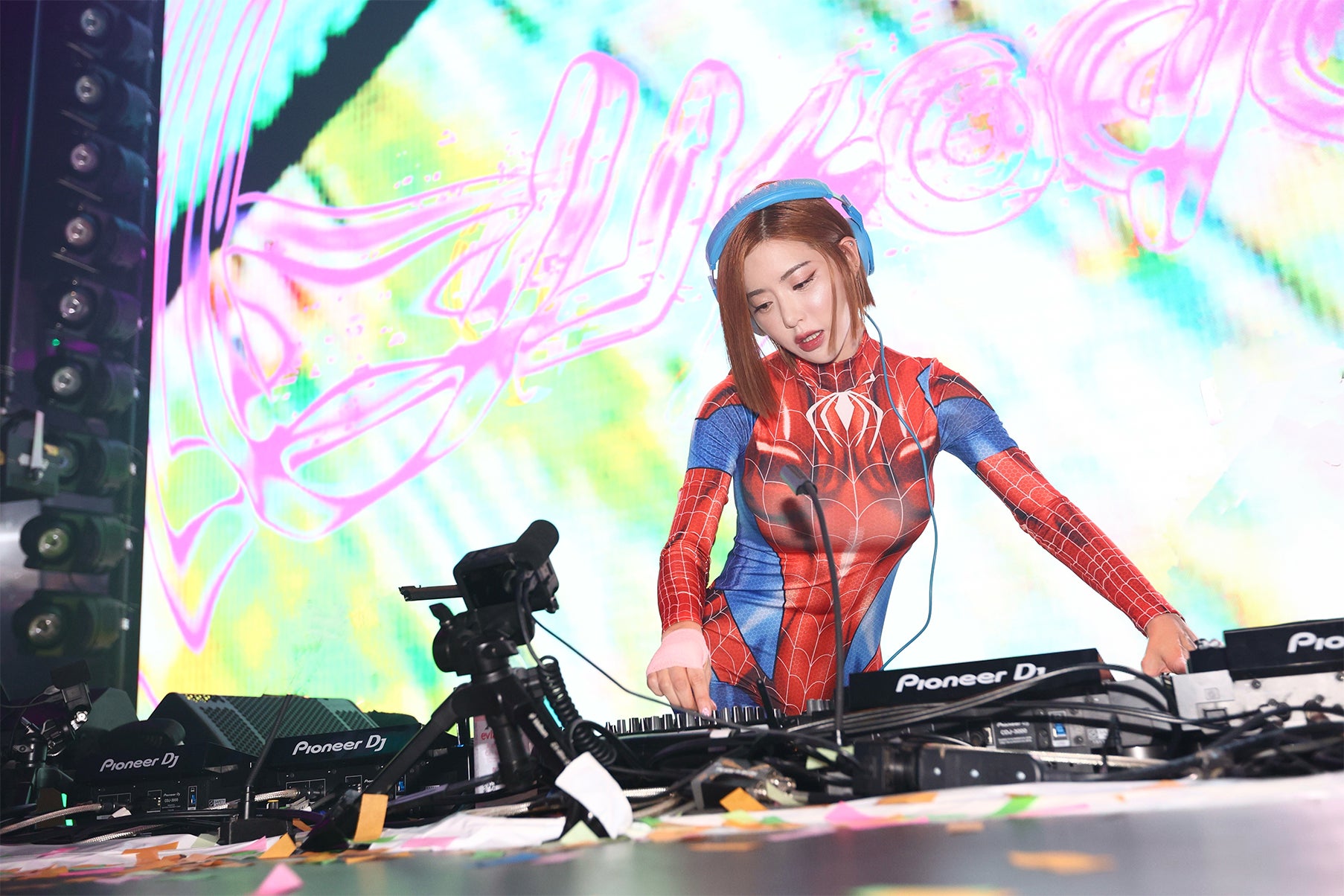 DJ SODAさんの衣装は「スパイダーマン」がテーマ!抜群のスタイルでヒーロースーツを着こなします。