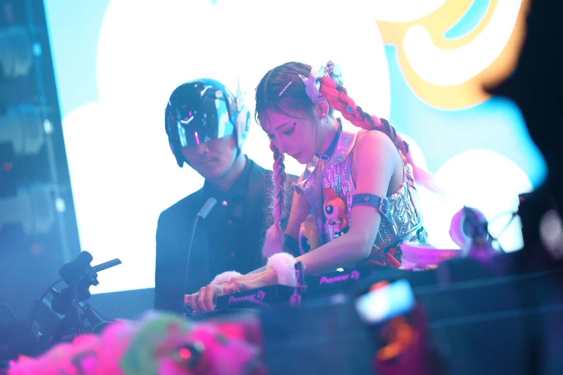 DJ Kiraraさんの衣装は「パワーパフガールズ」のデザイン。カラフルな三つ編みのヘアスタイルも素敵でした!